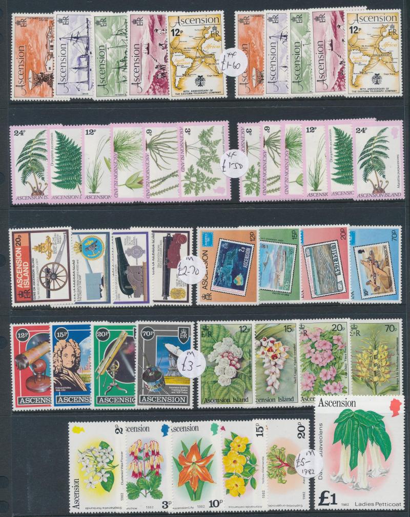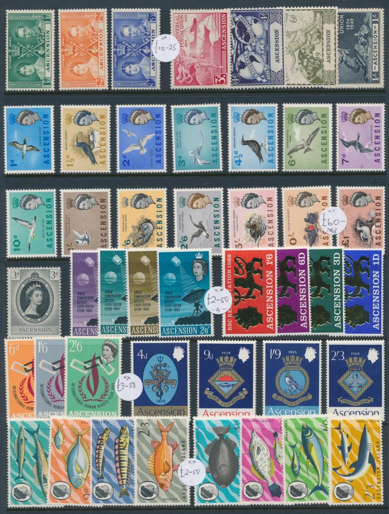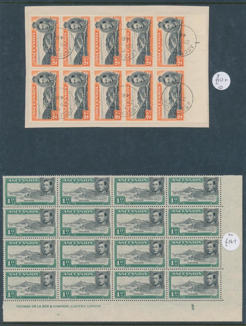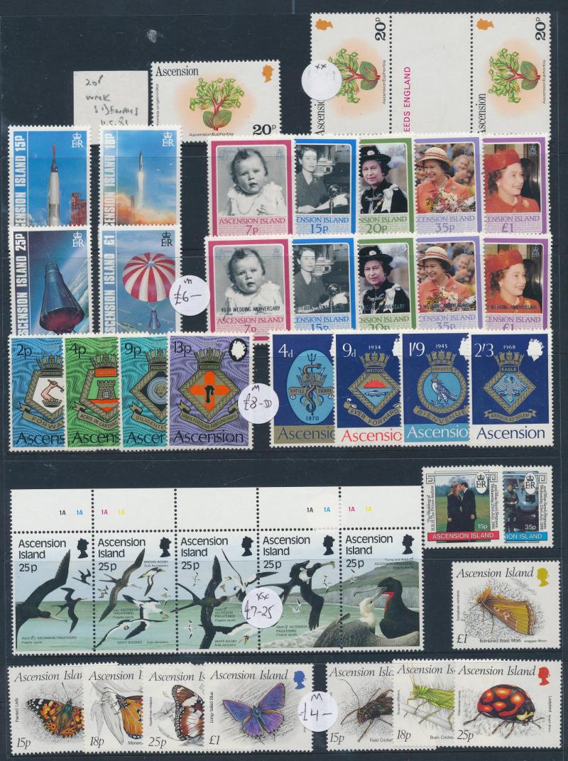 Collection to 1970s with 1922 'ASCENSION' overprints on St Helena KGV Badge set *, 1924-33 KGV Badge 3/- used, 1934 KGV Pictorials