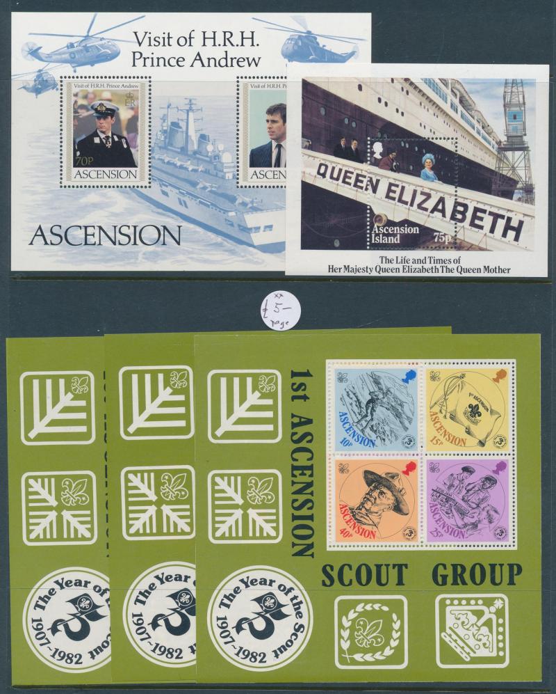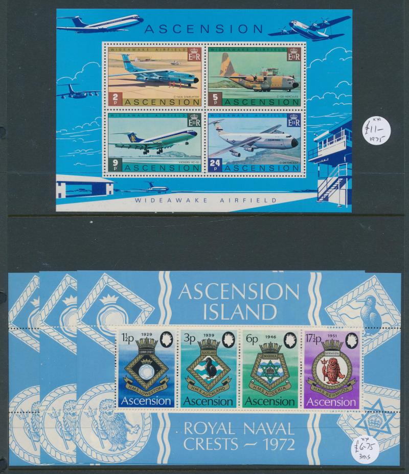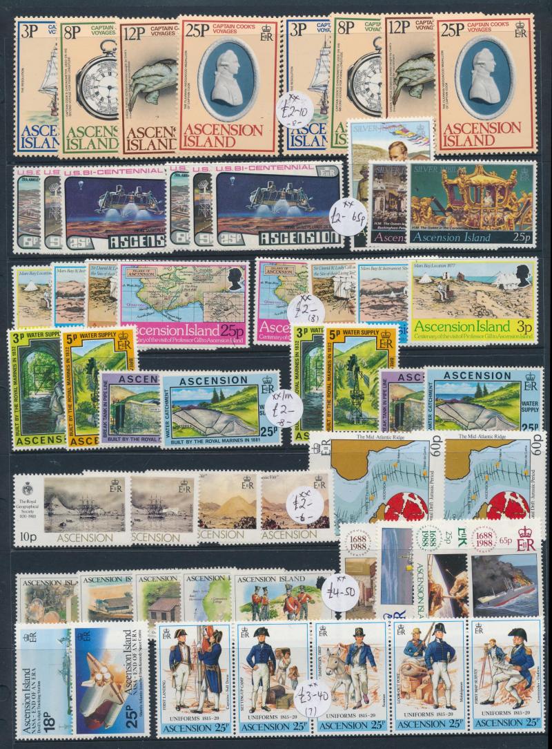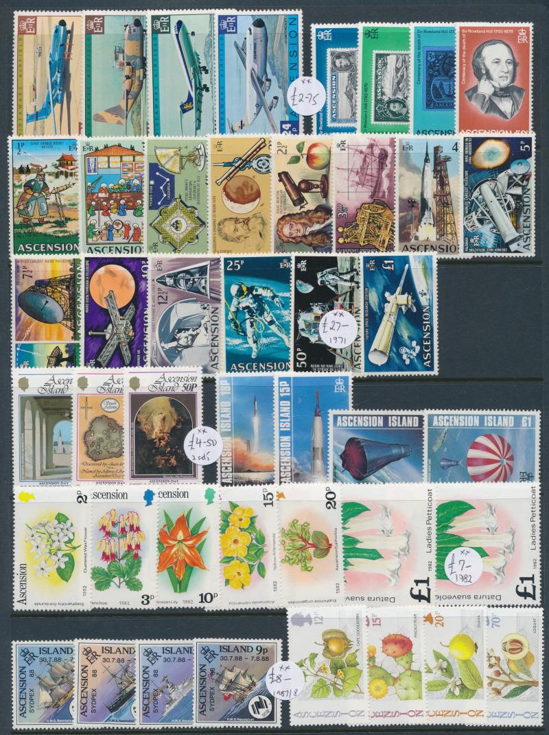 Collection to 1970s with 1922 'ASCENSION' overprints on St Helena KGV Badge set *, 1924-33 KGV Badge 3/- used, 1934 KGV Pictorials