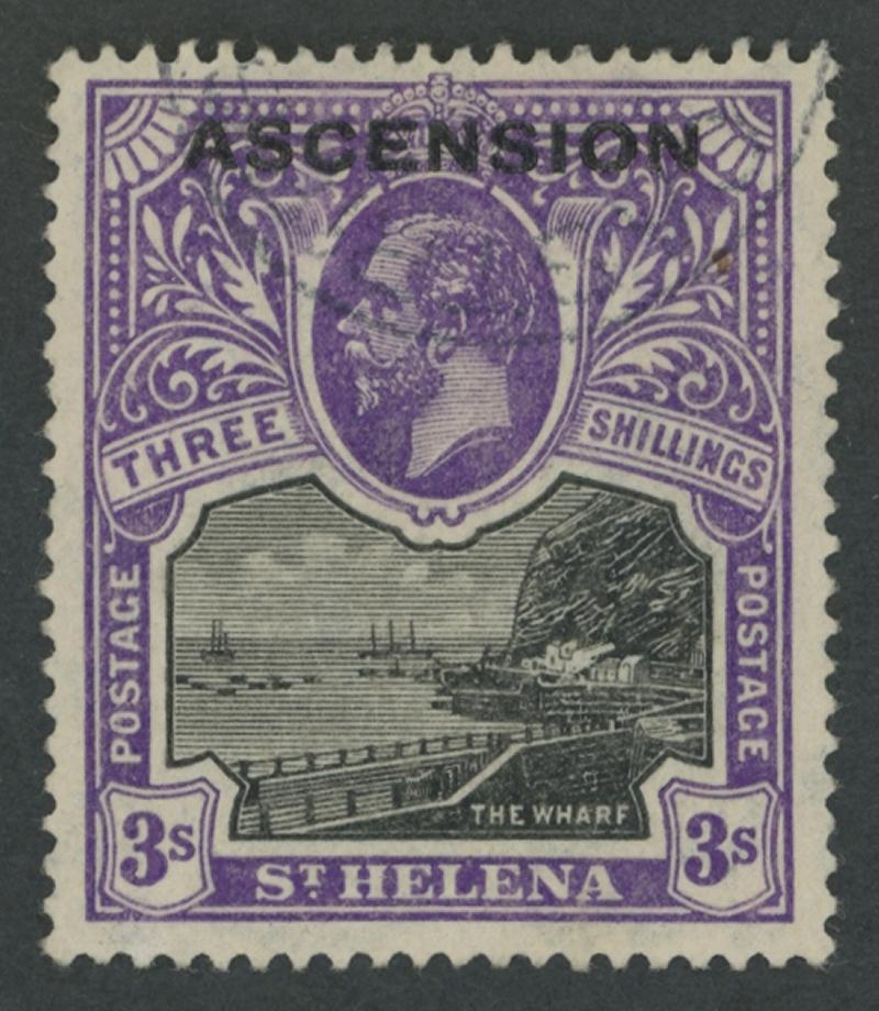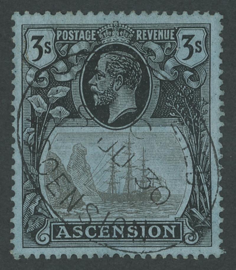1922 'ASCENSION' Overprints on St Helena 3/- black & violet SG 8, well-centred, light cds cancel, Cat £180. (Image1) (Image2)