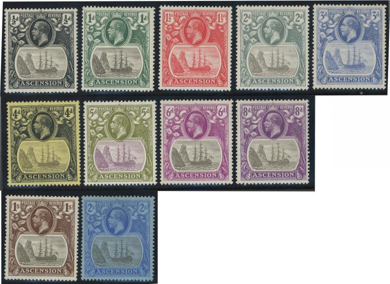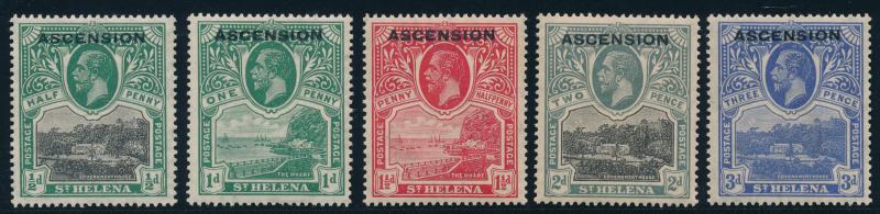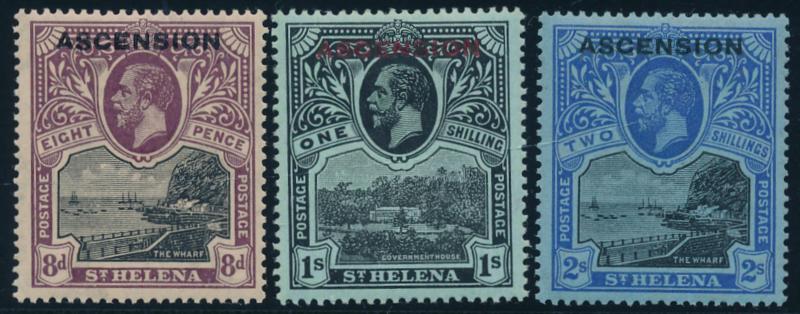 1922 'ASCENSION' Overprints on St Helena ½d to 3/- set SG 1-9, centring well above-average, all with neat large-part or complete