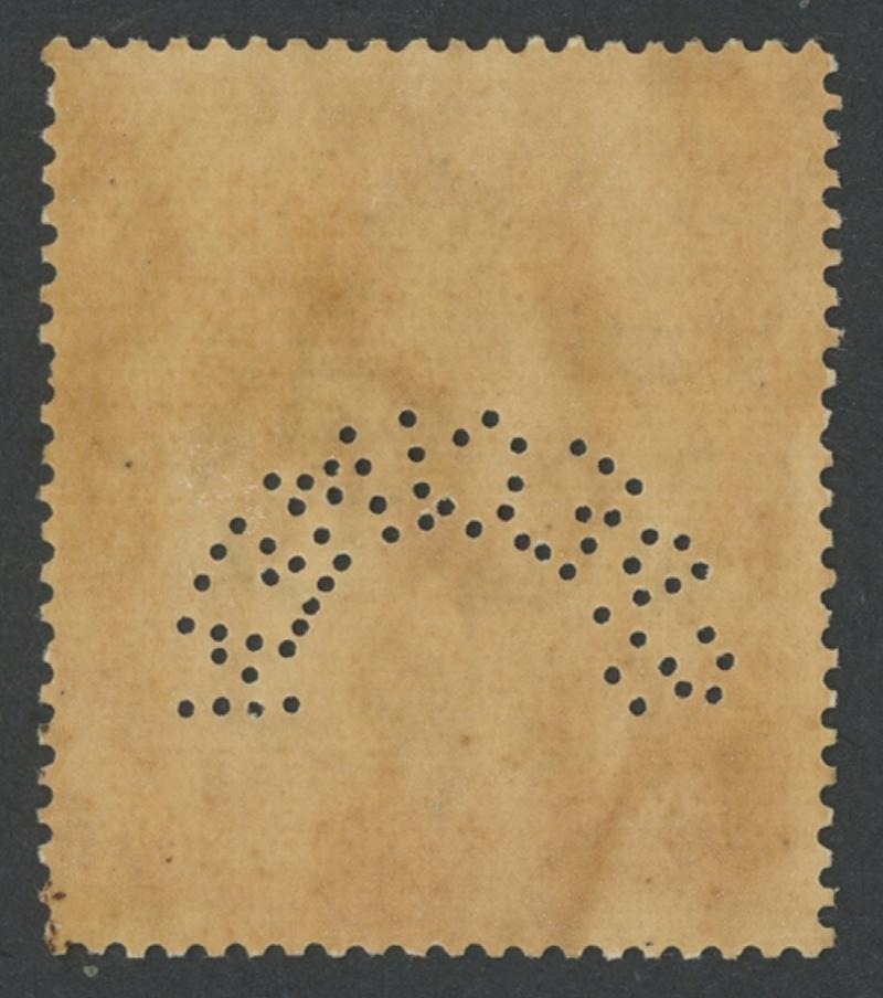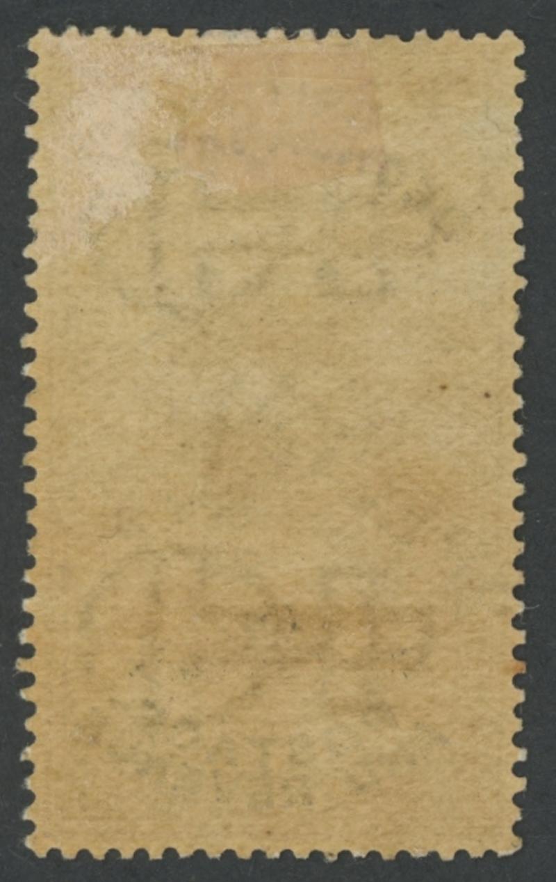 1878 Surcharges on Britannia 5/- dull rose Divided Vertically by Perforations and Value Tablet Severed '1 D.' Type 3a Overprint SG