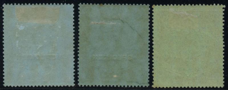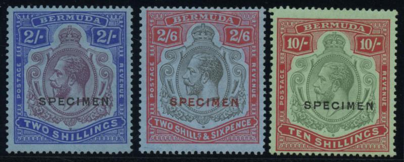 1924-32 KGV Keyplates Multiple Script CA Watermark 2/- 2/6d & 10/- overprinted 'SPECIMEN' (the 2/6d in Red) and 12/6d punctured