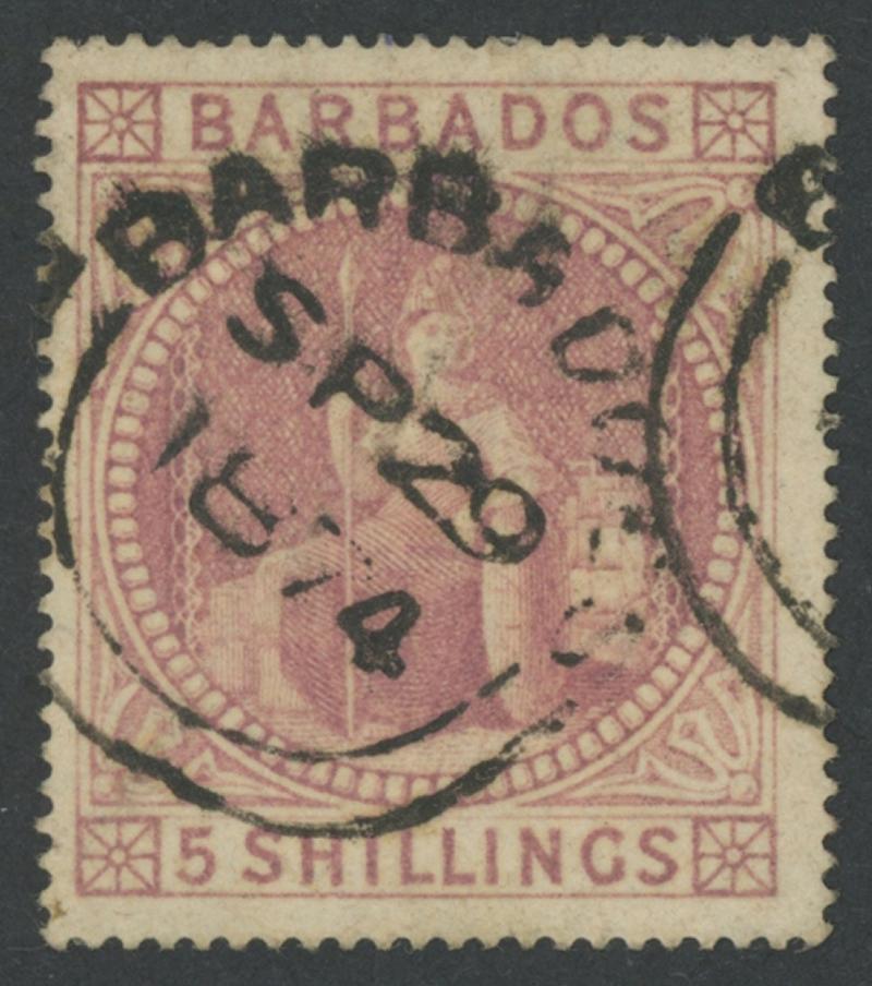 'BARBADOES/SP29/1874' cds cancel, Cat £300. A Brun guarantee handstamp in reverse. (Image1) (Image2)