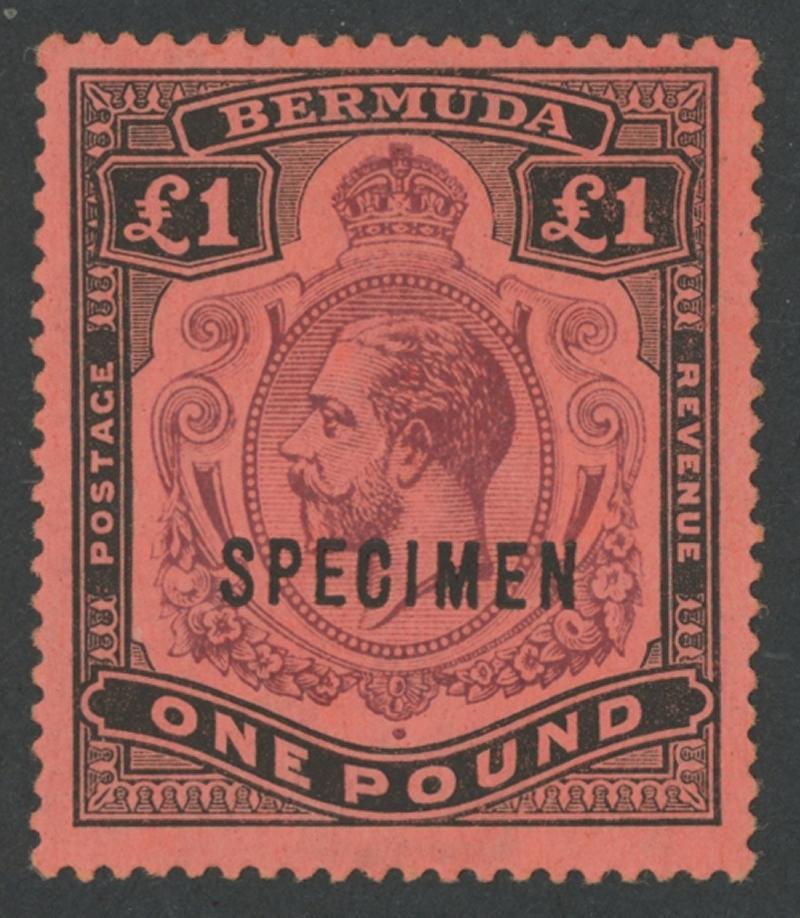 1924-32 KGV Keyplates Multiple Crown CA Watermark £1 purple & black/red overprinted 'SPECIMEN' SG 55s, quite well-centred, small