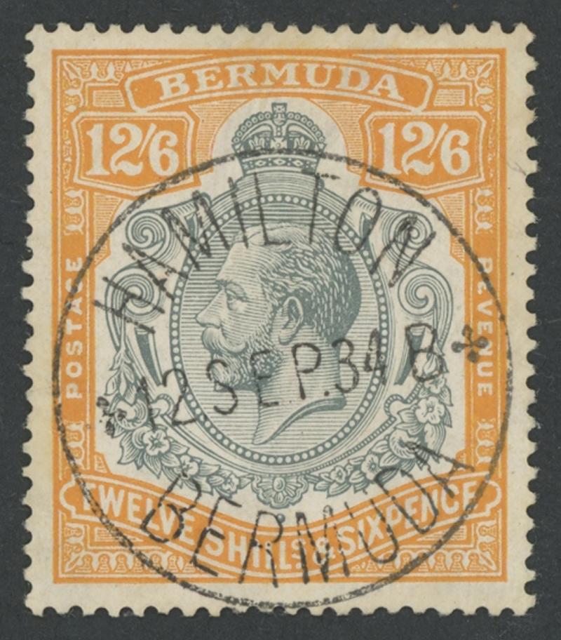1924-32 KGV Keyplates Multiple Script CA Watermark 12/6d grey & orange SG 93, quite well-centred, neat central Hamilton 1934 cds