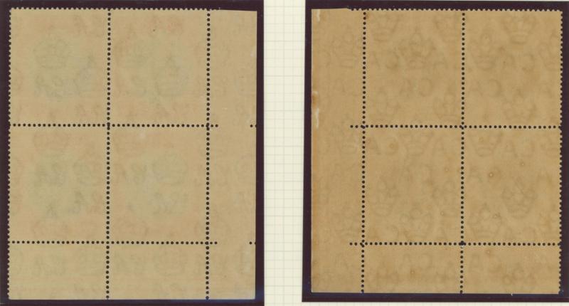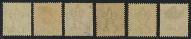 and on 1/- green unused x2 (one with wing margin; regummed), and Crown CA Wmk set * plus a few shades, etc, centring variable, a few minor blemishes but mostly fine to very fine, Cat £7800+.