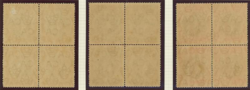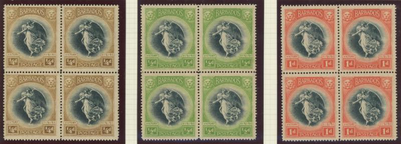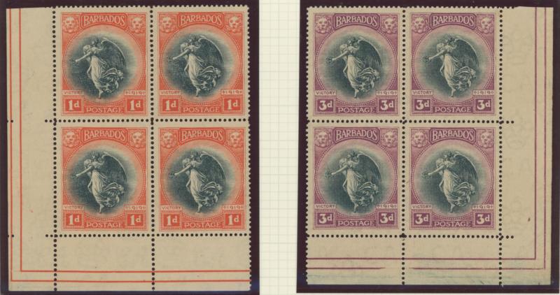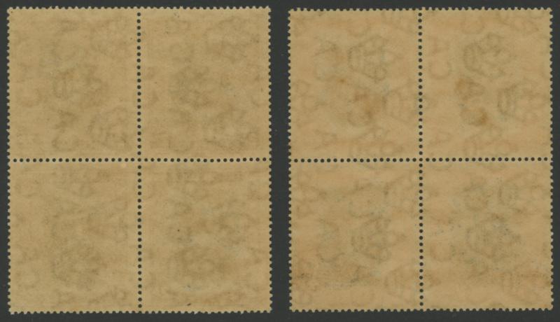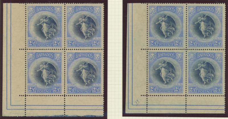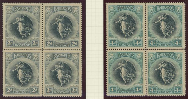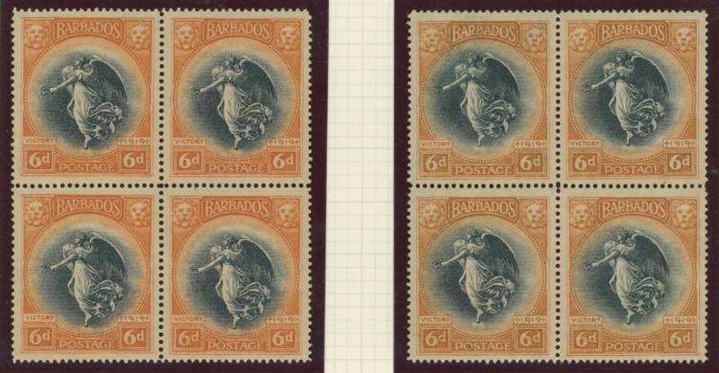1920-21 Victory ¼d to 3/- set SG 201-211 blocks of 4 including 1d both watermarks plus extra shades of 2½d & 6d, centring a little