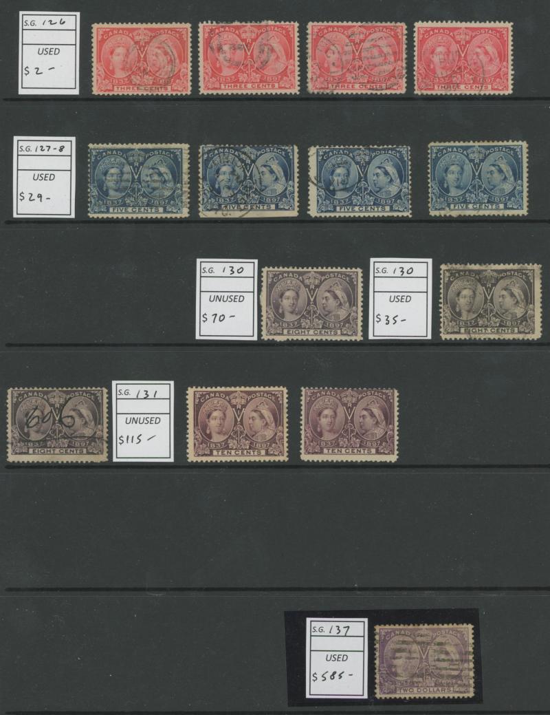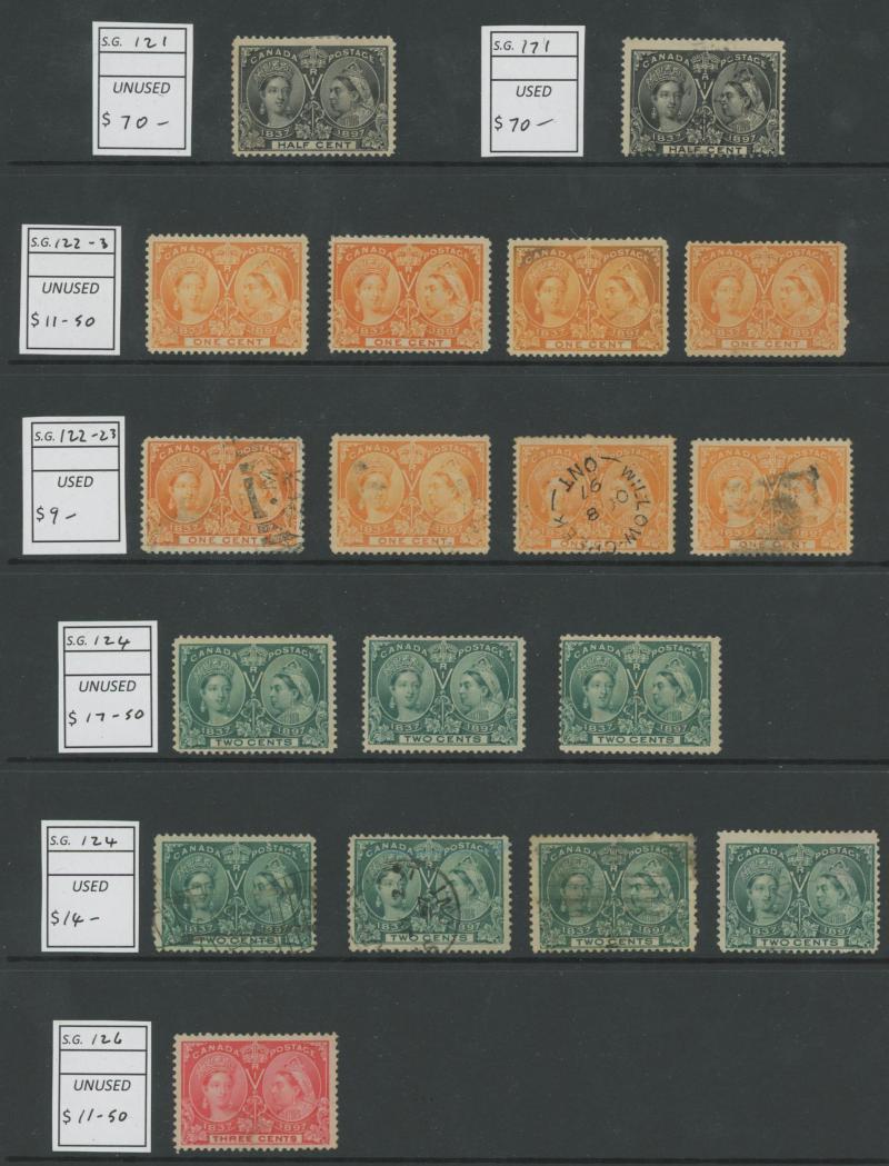 mint; highly catalogued Newfoundland; Province of Canada ½c mint, 10c x5, 12½c x7 & 17c x4, 2c x3 (one unused), Dominion Large Queens 1c orange-yellow, 6c x6, 12½c x6 & 15c x13, Thin Paper 5c SG 106 unused, 1893 Widow's Weeds 20c x3 & 50c x4, Jubilee