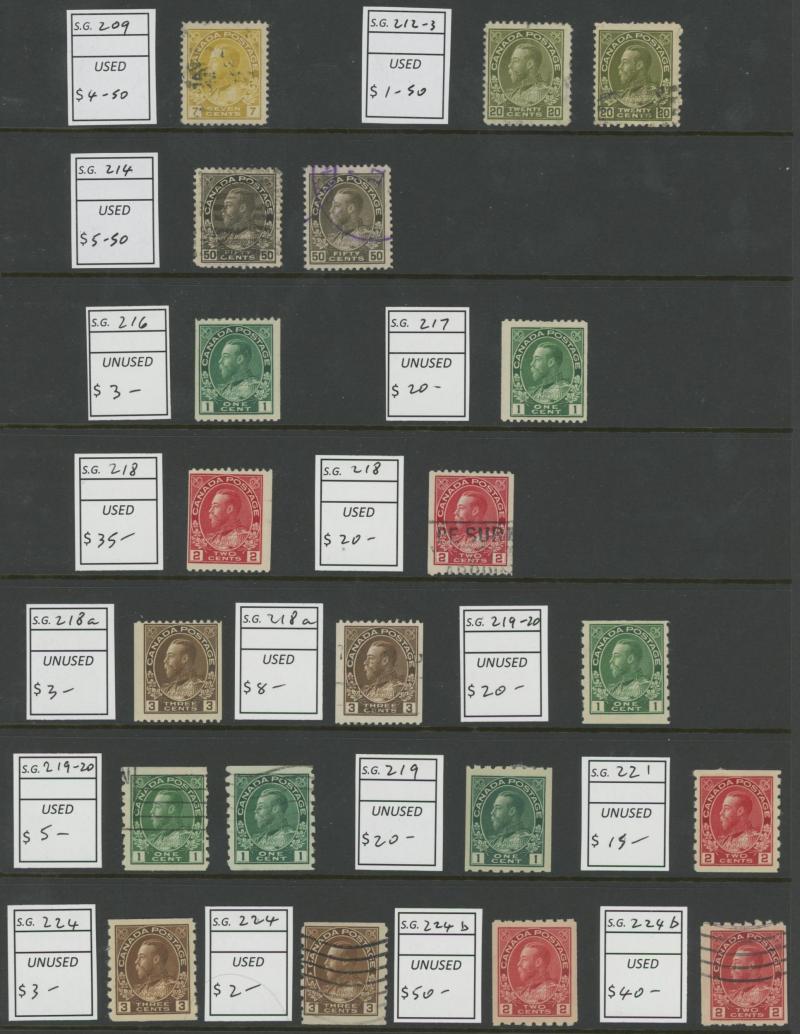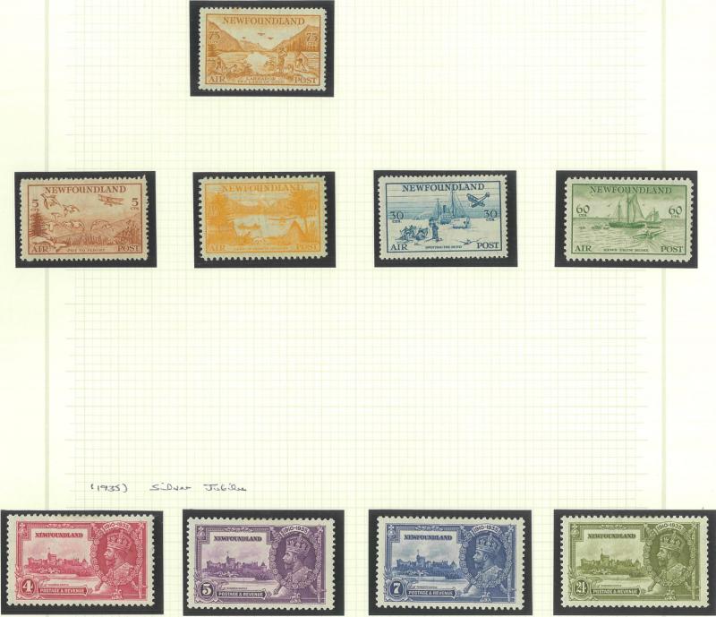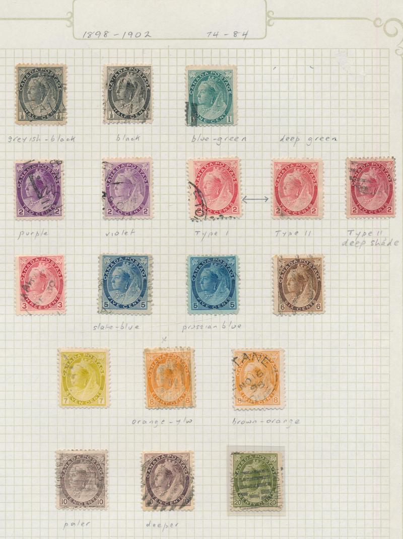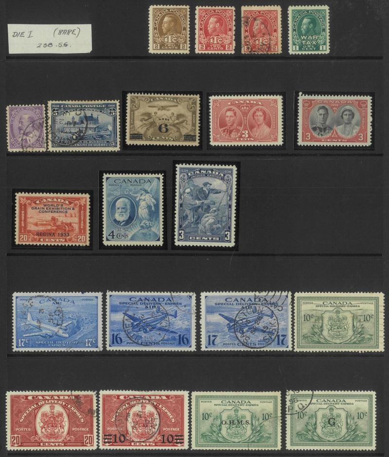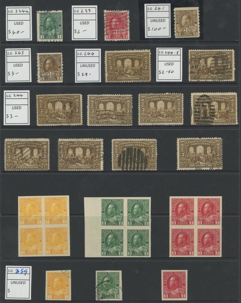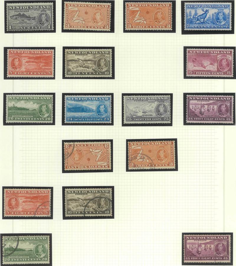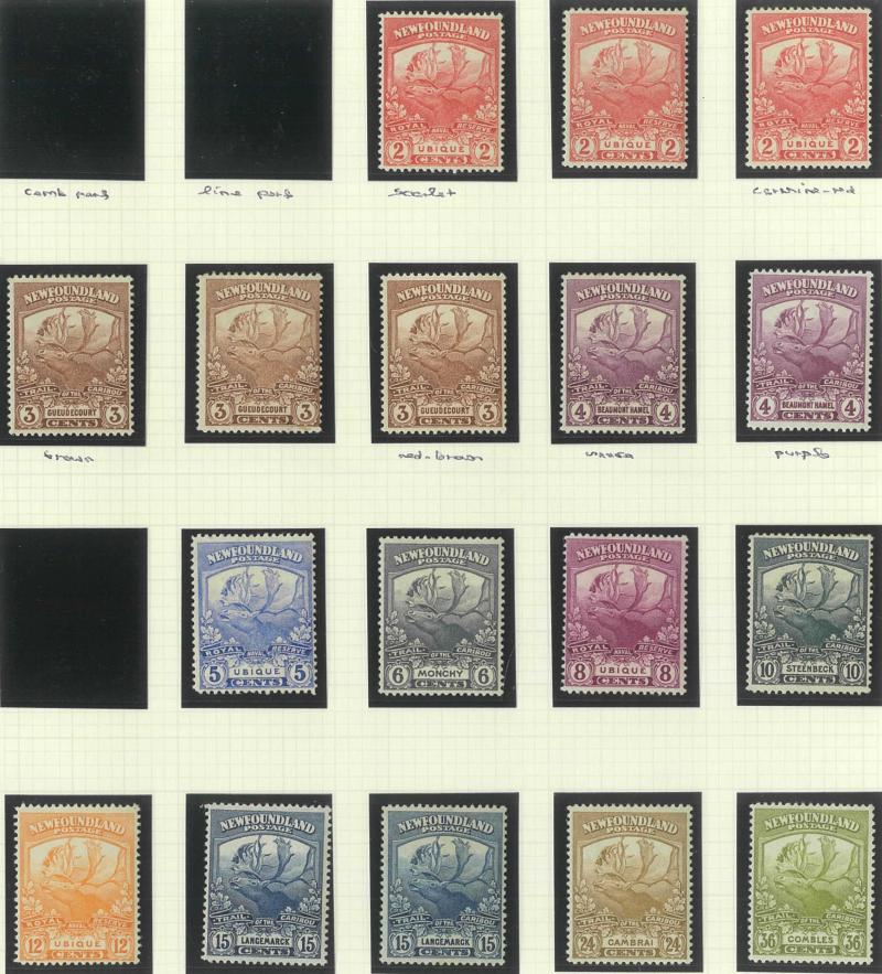 set, 1897 Royalty set plus 3c red-orange, 1910 Pictorials set plus Recess Printing set used, 1911 Coronation set plus 8c greenish-blue, 1919 Caribou set (ex 1c) plus shades including 15c Prussian blue, 1919 Airmail 'ONE DOLLAR' overprint se-tenant
