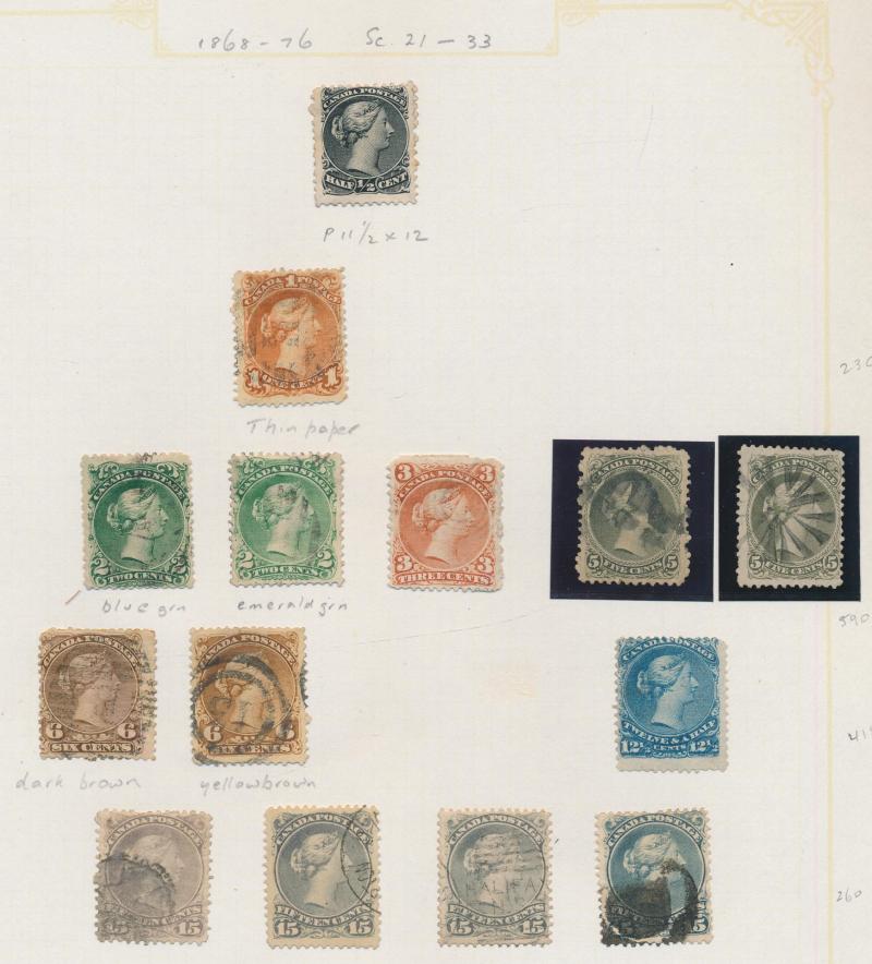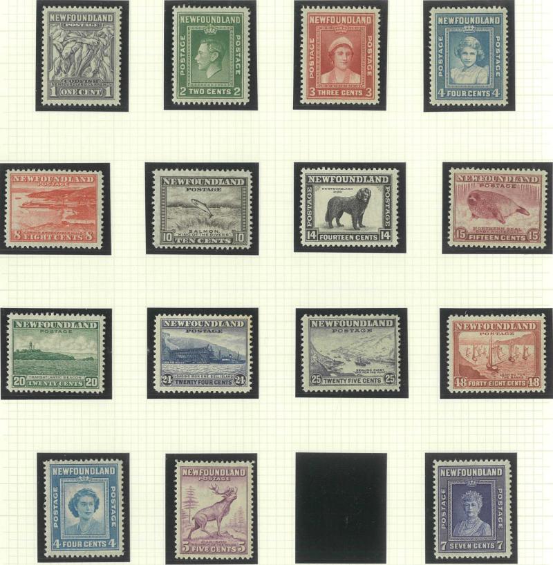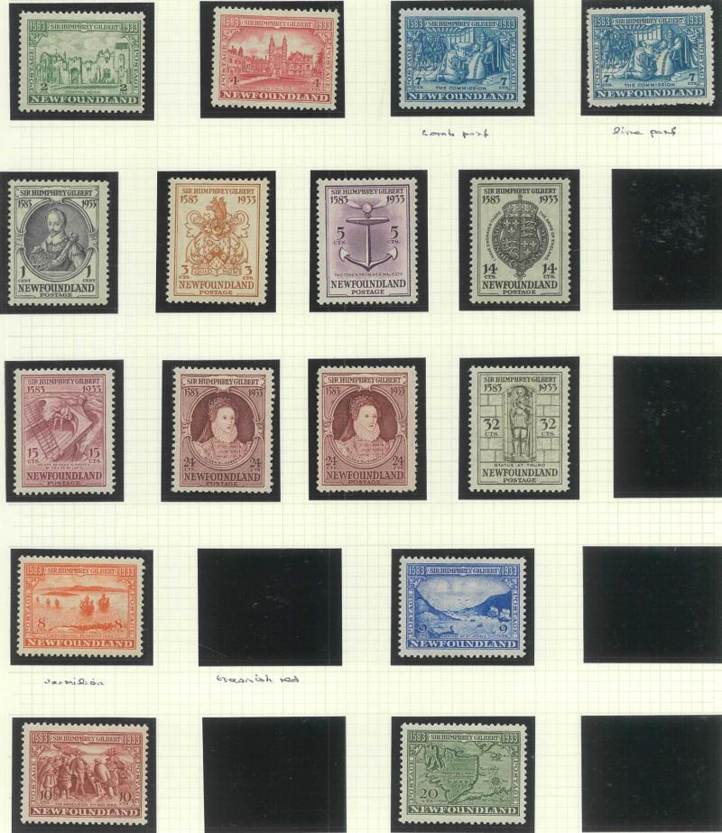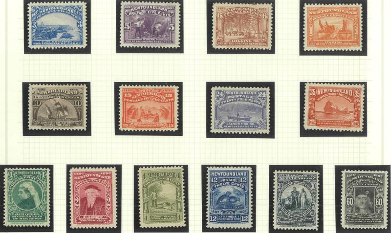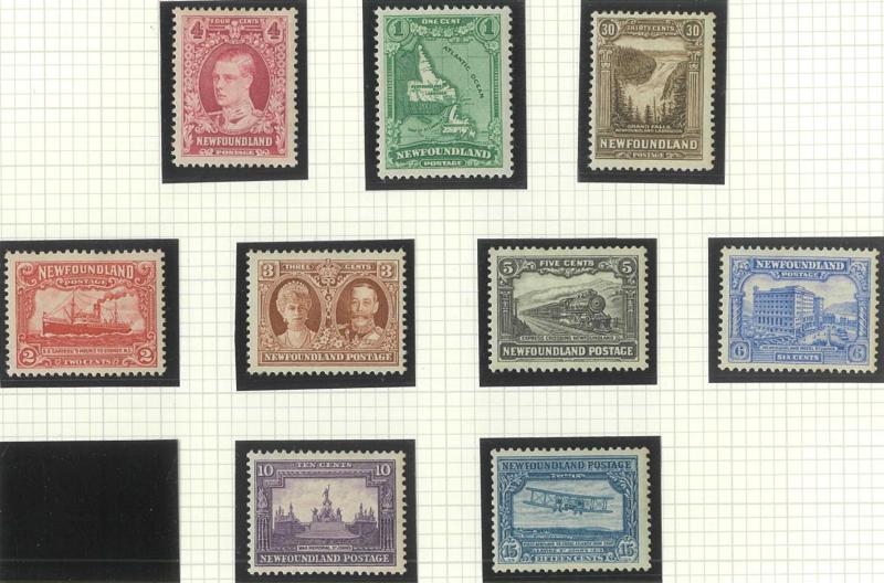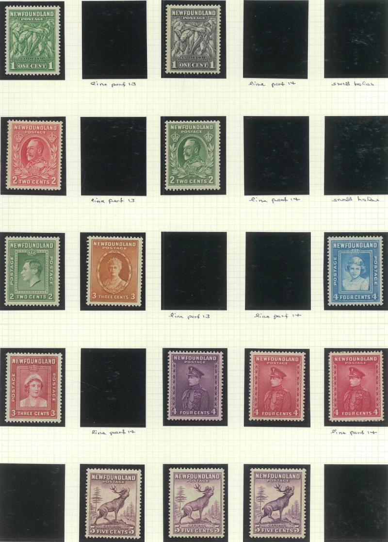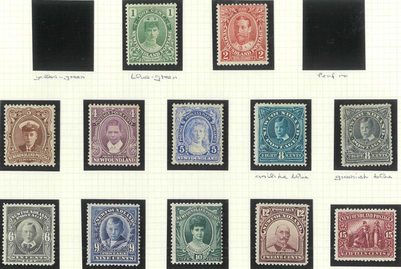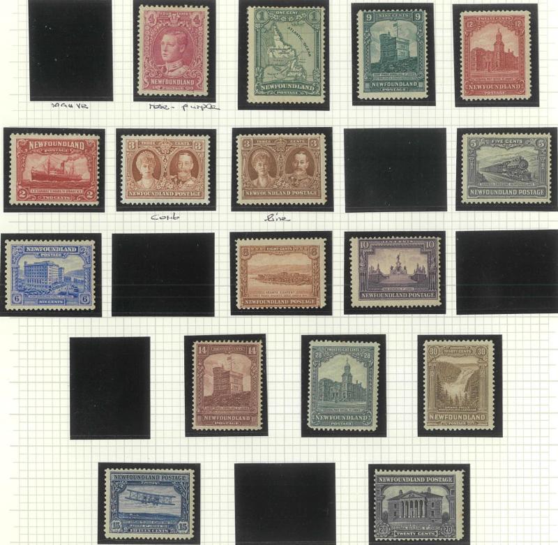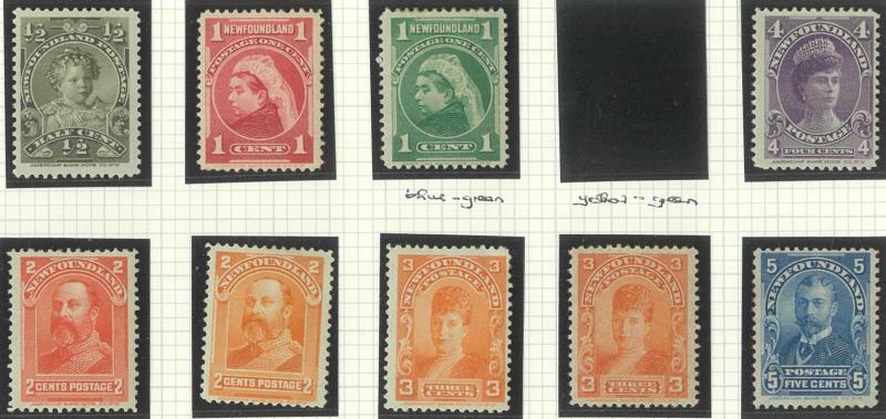 NEWFOUNDLAND: 1860s-1940s collection on leaves from Crown & Flowers Imperforate 1d x2, 2d, 3d & 5d plus 1862-64 New Colours 2d, 4d,