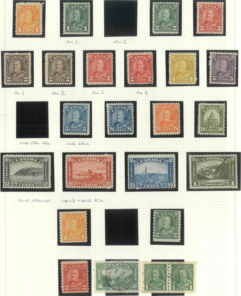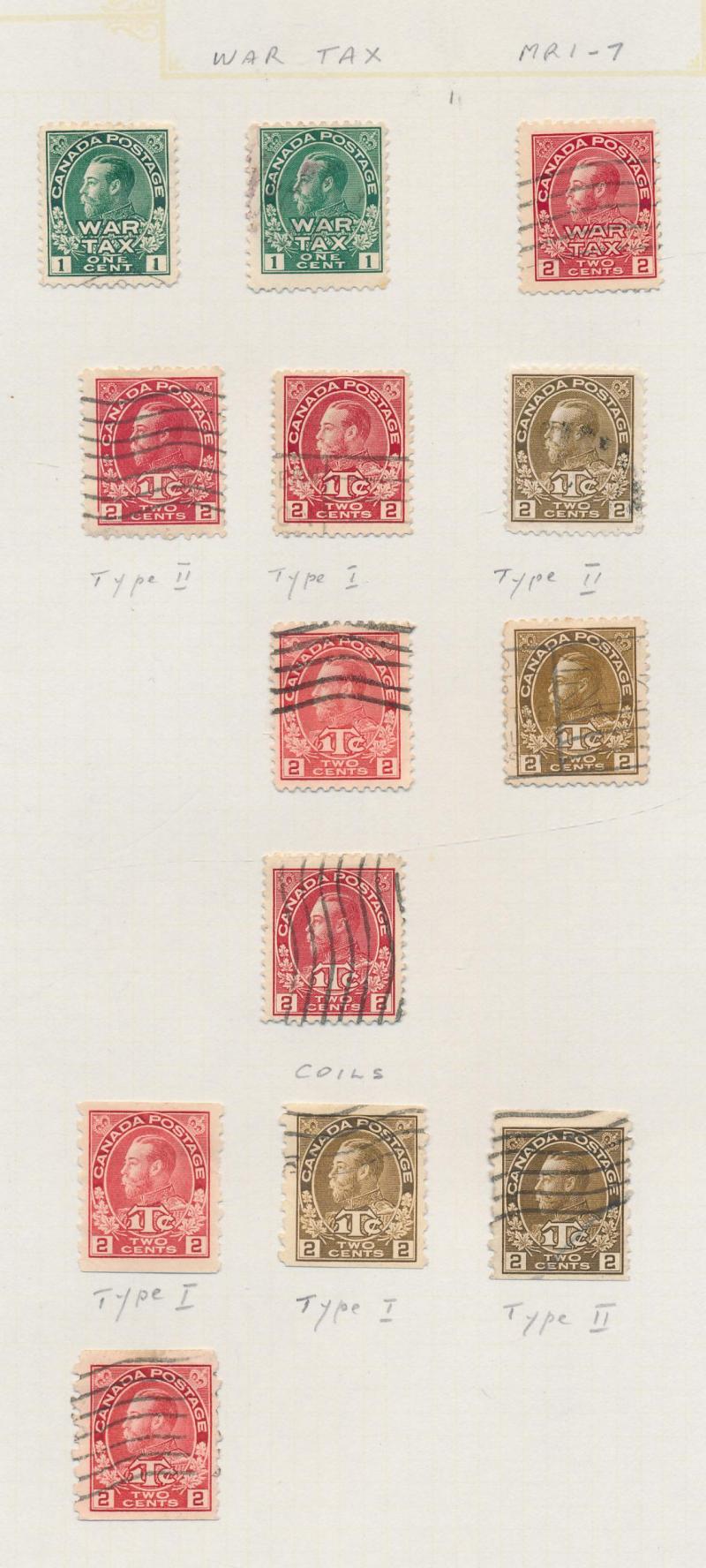 2c) plus 5c used, 1911-31 KGV Heads to $1 with shades including 5c deep blue, 5c grey-blue, 10c brownish-purple, 10c reddish-purple, 20c olive-green, 20c olive, 50c grey-black & 50c sepia plus coil stamps, 1916 War Tax 2c+1c brown Die I *, 1928-29