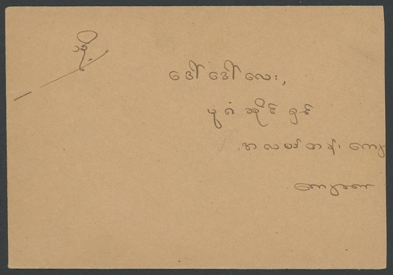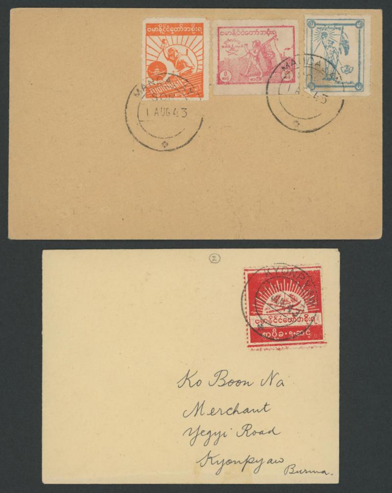 JAPANESE OCCUPATION: Three commercial items with Occupation Pictorials tied by Indian-pattern cds of 'MERCHANT STREET/RANGOON',