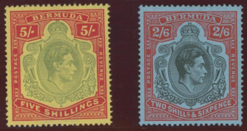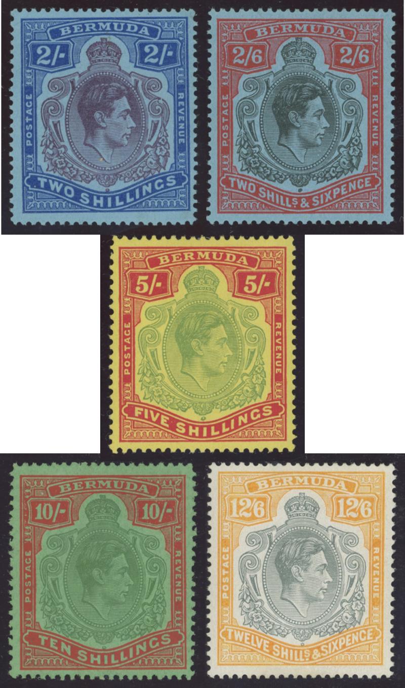 116ce, 2/6d x2, 5/- x4 one with Plate Number '1', 12/6d, and 10/- **, most are lightly mounted, Cat £1200+ for unmounted.