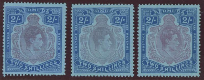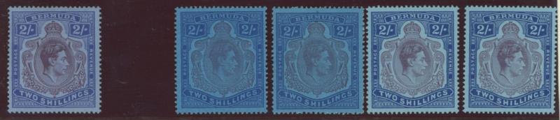 1938-53 KGVI Keyplates mint range comprising 2/- x11 with shades including purple and blue/deep blue Broken Lower Right Scroll SG