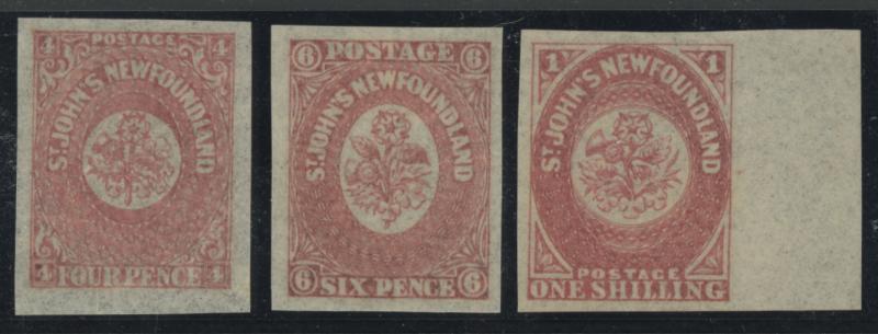NEWFOUNDLAND: 1862-64 New Colours Crown & Flowers Imperforate 4d rose-lake, 5d chocolate-brown, 6d rose-lake, 6½d rose-lake, 8d