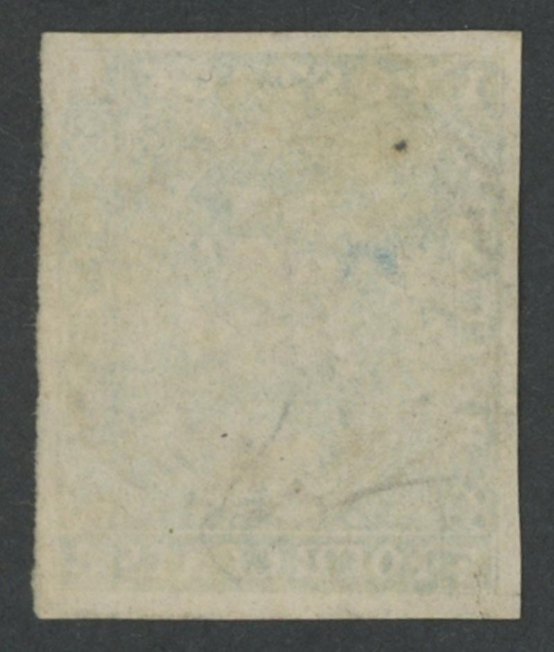 1853-55 Unframed Corner Figures Imperforate 4c blue SG 19, good even margins, writing-ink on the reverse, largely very fine