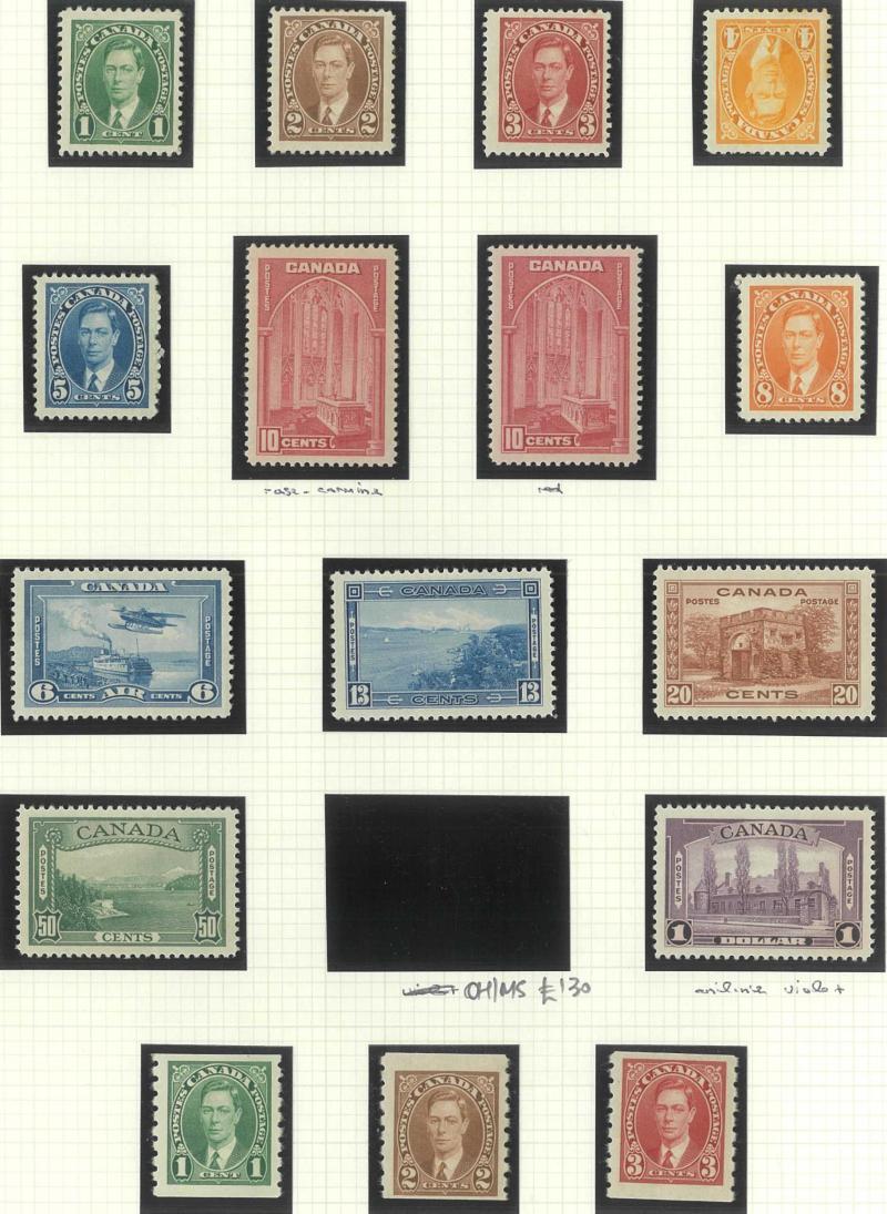 50c Bluenose used & $1 Parliament *, 1930-31 Maple Leaf set plus blocks of 4 */** up to 12c, 1935 Pictorials set plus 1c & 2c booklet panes, 1937-38 Pictorials set plus coils * and 50c punctured 'OH/MS' used, 1942 War Effort set * plus coils &
