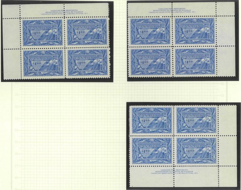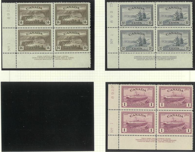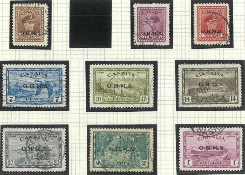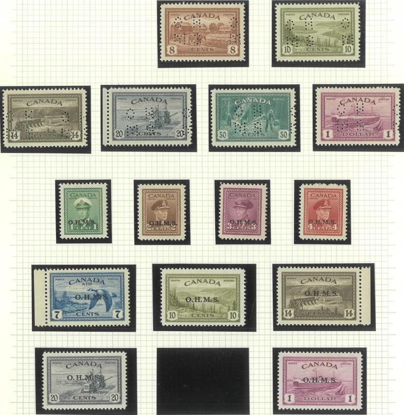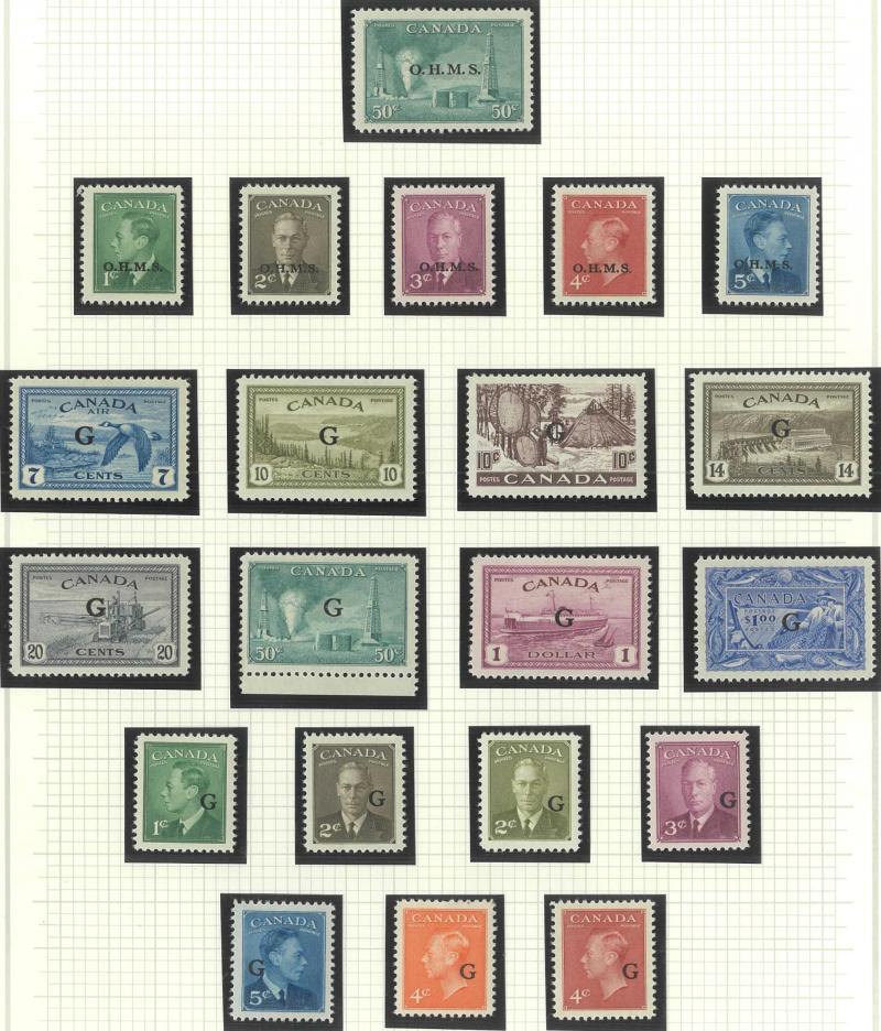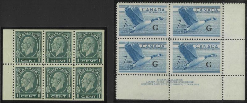 booklet panes **, 1946 Peace 14c, 20c & $1 imprint blocks of 4 ** plus punctured 'OH/MS' 8c to $1 * and overprinted 'OHMS' set * (ex 50c) and used (ex 1c), 1949 'OHMS' overprints set *, 1950-51 'G' overprints set with both $1 *, 1951 Fisherman $1