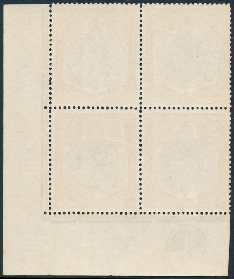1938-53 KGVI Keyplates 12/6d grey & pale orange Chalk-Surfaced Paper SG 120e block of 4 from the lower-right corner of the sheet