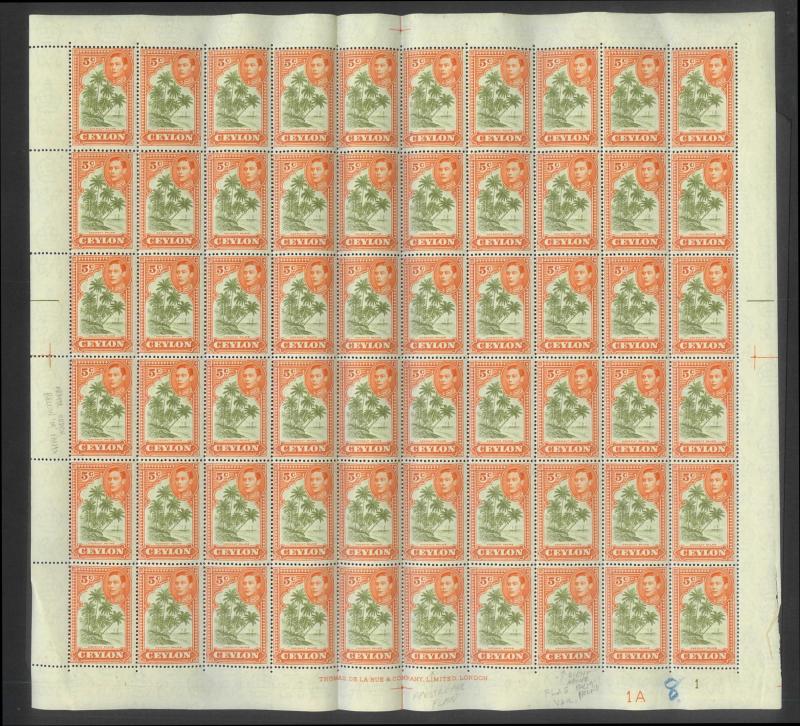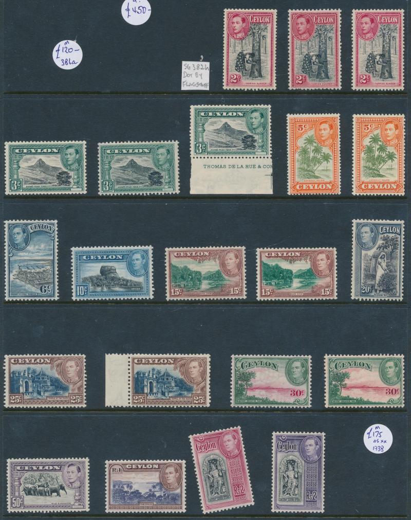 1935 Jubilee 50c Dot by Flagstaff SG 397h used; KGVI 1938 to 5r mint including 2c Perf 13½x13, 1943 5c Apostrophe Flaw SG 387fa ** in a block of 14 & in a complete sheet */**, KGVI 10r & 20r postal fiscals used; condition variable, Cat £2800+.