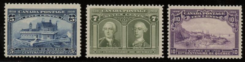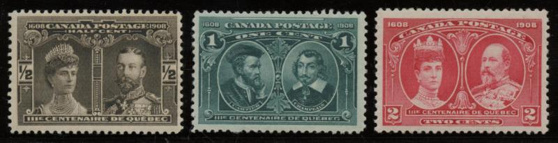 1908 Quebec Tercentenary ½c to 20c set SG 188-195 (Scott 96-103), above-average centring for this issue, a few with tiny hinge
