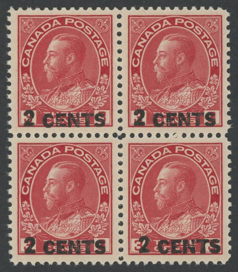 1926 Surcharges on KGV Heads '2 CENTS' on 3c carmine SG 264 (Scott 139) block of four, well-centred, unmounted, Cat £200+ for