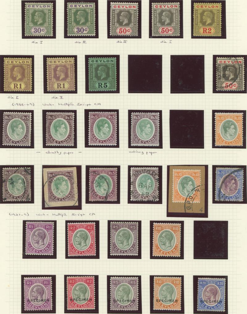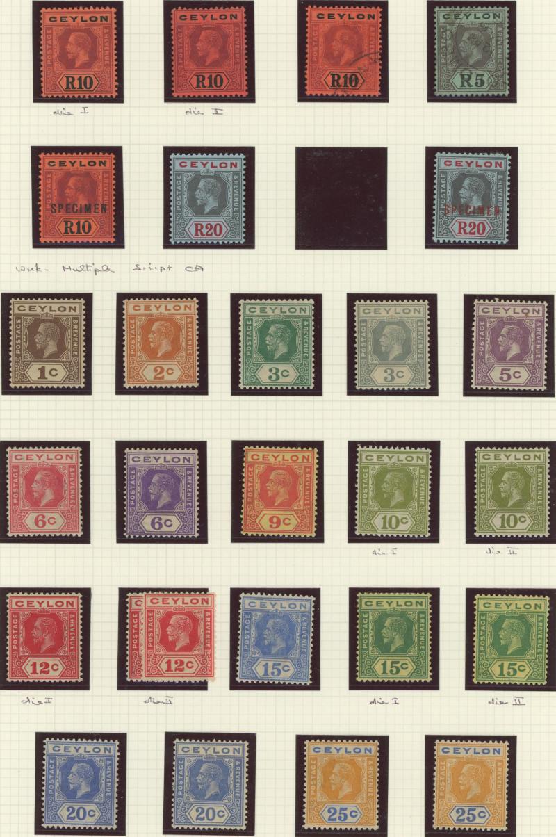 Crown CA Wmk set, 1910-11 Multiple Crown CA Wmk set, 1912-26 KGV Keyplates sets with extra shades & papers plus Crown CA Wmk 10r Die II & 20r *, 5r & 10r both Die II used and 'SPECIMEN' overprints 10r 20r 50r & 100r (the last two with slightly