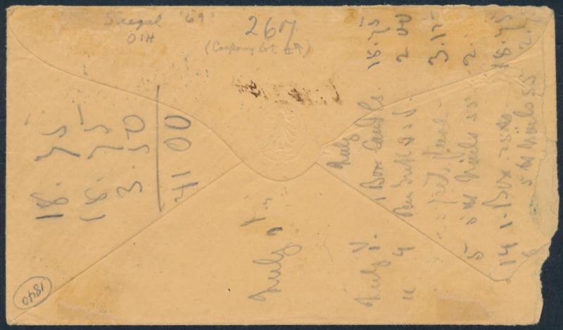 ISLAND' undated oval cachet at lower-left, endorsed "Coll 1.00" in manuscript alongside the adhesives, a little roughly opened at lower-left just affecting the 'PAID' cachet and some pencil annotations on the reverse. Gibbons states that after