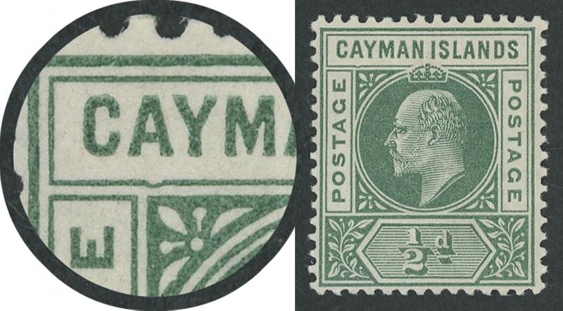 1902-03 KEVII Keyplates Crown CA Watermark ½d green with Dented Frame below 'A' of 'CAYMAN' (Glover Flaw) SG 3a, well-centred,
