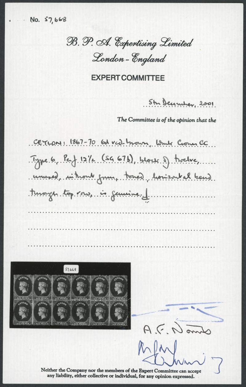 crease across the upper row is barely evident from the face, unused, Cat £780+ for singles. BPA Certificate (2001) as the then SG 67b. A handsome multiple. (Image1) (Image2)