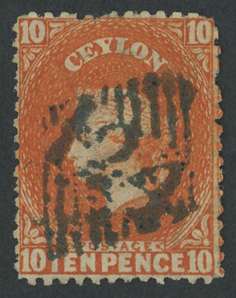 1867-70 Wmk Crown/CC 21½ mm High 10d orange SG 70c, rounded upper-right corner, fine '124'-in-bars cancel of Aden. Very scarce on a
