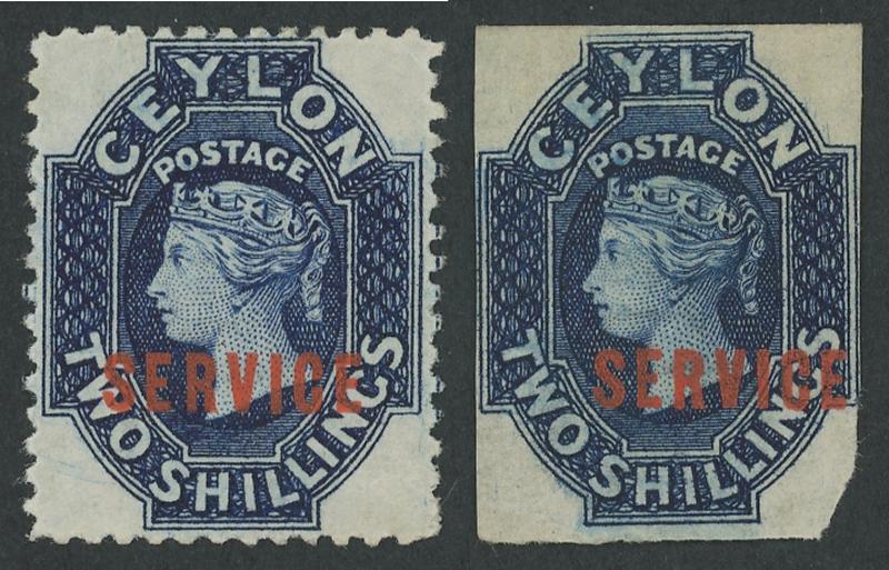 colour, no gum. Unissued. Rare. Kimmel & Pearson at page 348 state that Marcus Samuel did not record Type D5 on the 'SERVICE' issue but that Baron Percy de Worms recorded it in black on the 2d 6d 1/- & 2/- and in blue on all values. K&P do not