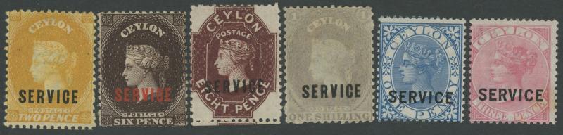 OFFICIAL STAMPS: 1869 'SERVICE' Overprint 2d yellow to 2/- deep blue SG O1-5, large-part gum, a second 2/- apparently Imperforate