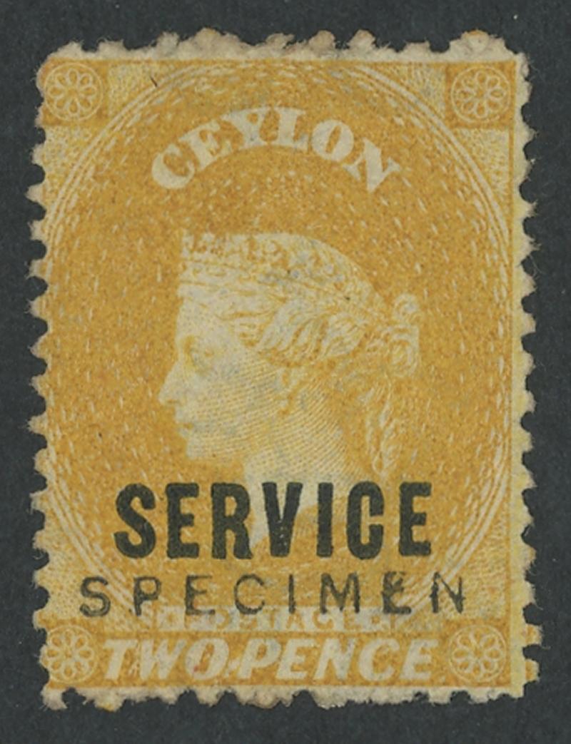 OFFICIAL STAMPS: 1869 'SERVICE' Overprint 2d yellow with small sans-serif 'SPECIMEN' Handstamp Samuel Type D5 in Black, excellent