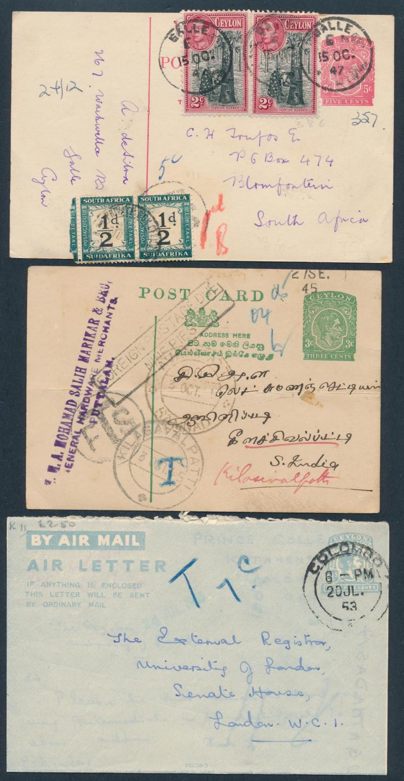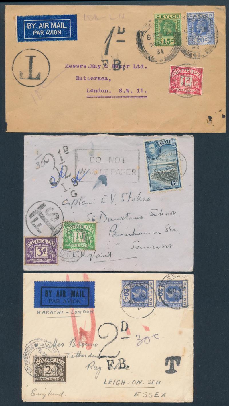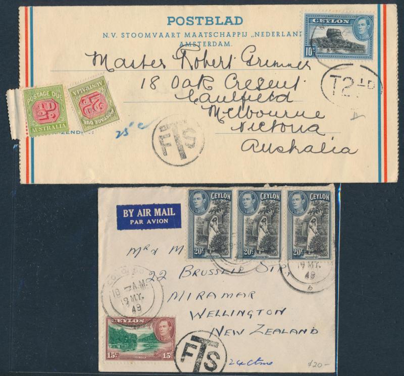 Mostly KGVI covers, etc, all with Ceylon tax markings including items to Australia, Austria, Belgium, Burma & New Zealand, others