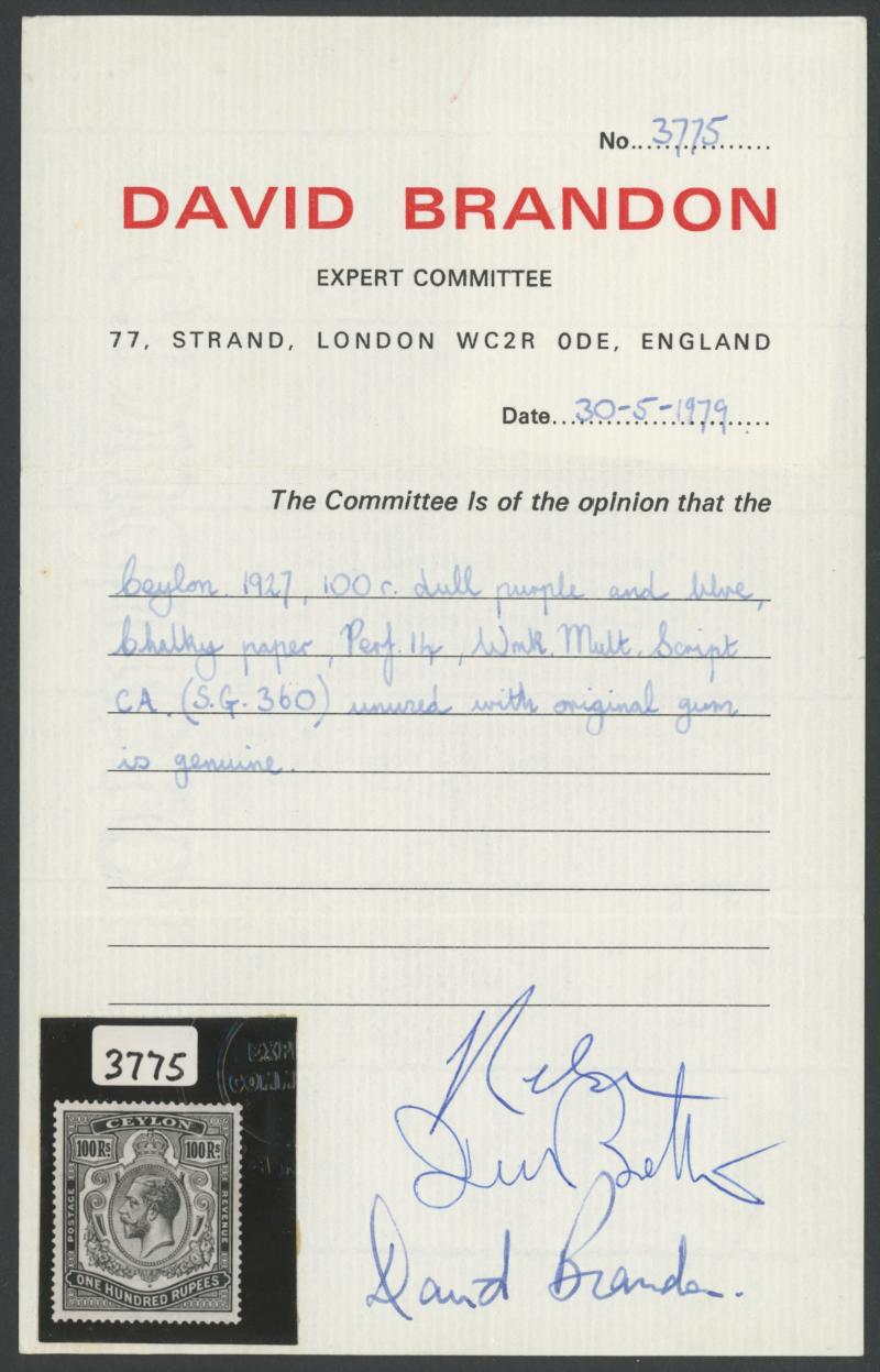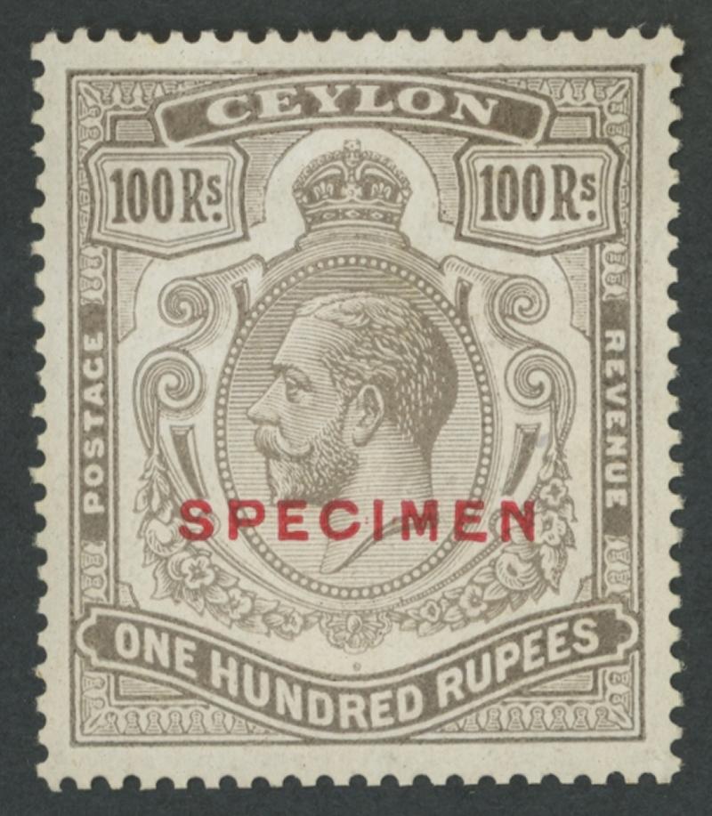1921-32 KGV Keyplates Multiple Script CA Watermark 100r brownish-grey overprinted 'SPECIMEN' in red SG 359s, well-centred,