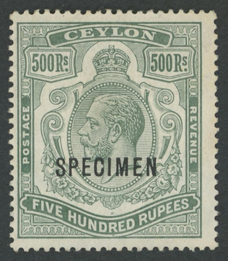 1912-25 KGV Keyplates Multiple Crown/CA Watermark 500r dull green overprinted 'SPECIMEN' SG 322s, light gum tropicalisation & minor
