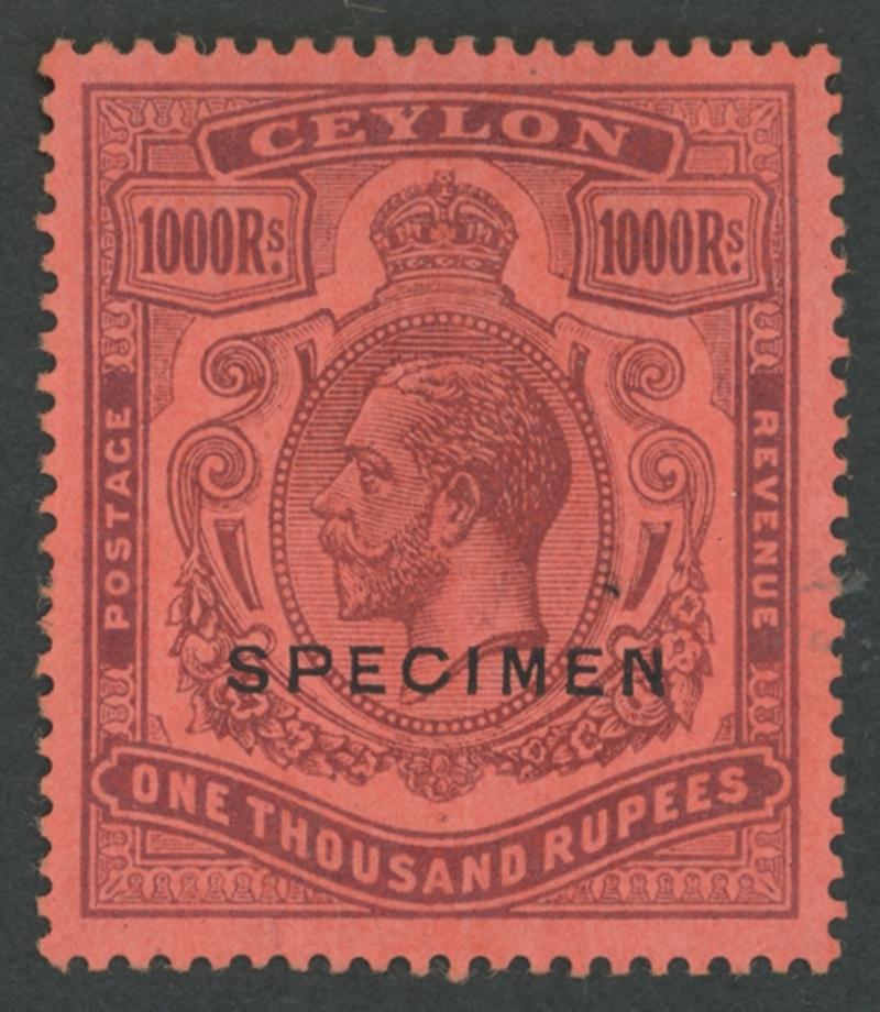 1912-25 KGV Keyplates Multiple Crown/CA Watermark 1000r purple/red overprinted 'SPECIMEN' SG 323s, fresh colours, well-centred,
