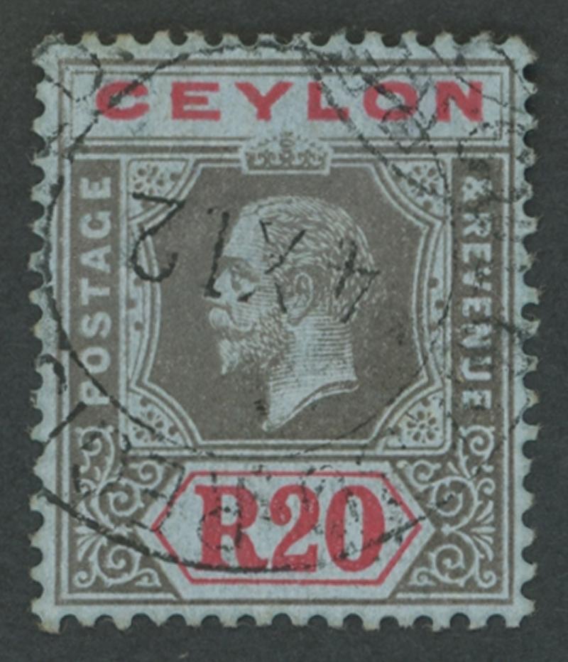 1912-26 KGV Keyplates Multiple Crown CA Watermark 20r black-brown & carmine/blue SG 319, very well-centred, light but clear Colombo