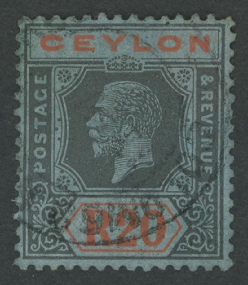 1921-32 KGV Keyplates Multiple Script CA Watermark 20r grey-black & vermilion/blue SG 357, light but clear Colombo cds cancel, Cat