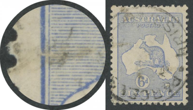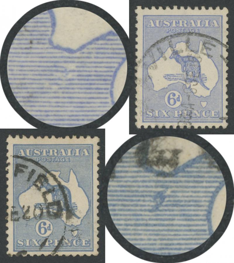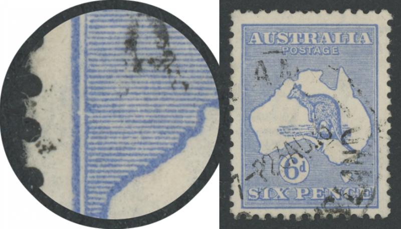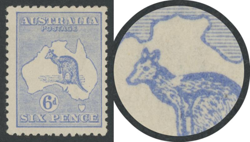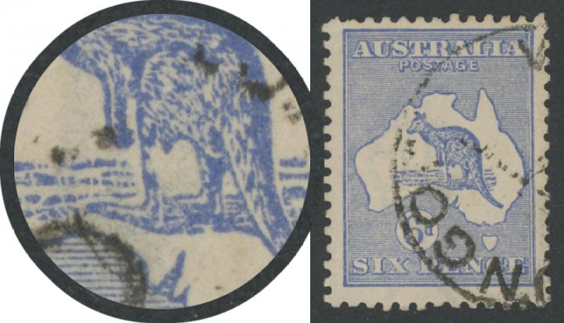 6d ultramaine Die IIB SG 38d with White Flaw on Kangaroo's Neck [Pos unlocated] ACSC 20(U)d, lightly mounted, Cat $400. (Image1) (Image2)