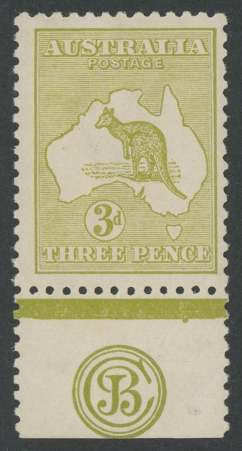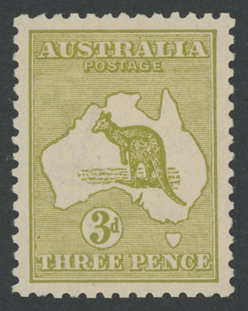 3d deep olive Die II with the Watermark Inverted ACSC 13Gaa (SG 37dw), very well-centred, small hinge remainder, Cat $1250
