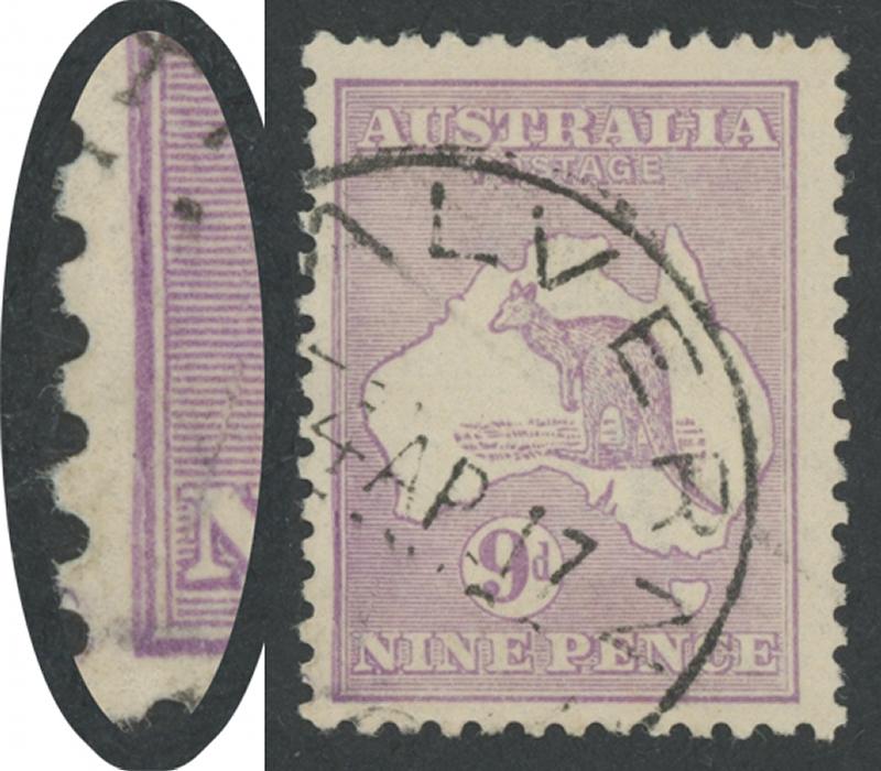 9d pale violet Die II SG 39 with Left Frame Damaged [Pos unlocated] ACSC 26B(U)d, Malvern (Vic) cds cancel of '-4AP17' clear of the