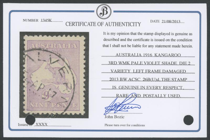 variety, Cat $500. NPC Certificate (2013). The ACSC states that "only several examples have been seen" and that this may be one of the clichés substituted by Cooke. (Image1) (Image2)