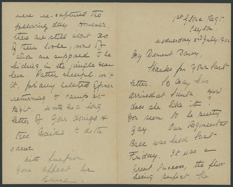 light toning. With the enclosed letter headed "1st Glouc Regt/Ceylon" to the writer's sister in which he states "...There's a prison within a mile of this camp where all native convicts undergoing long sentences are sent to. A few days ago 75 of them