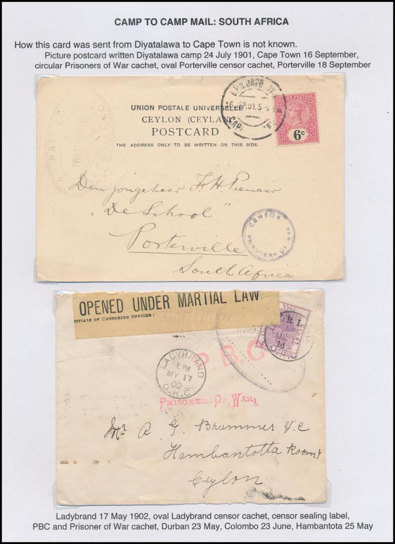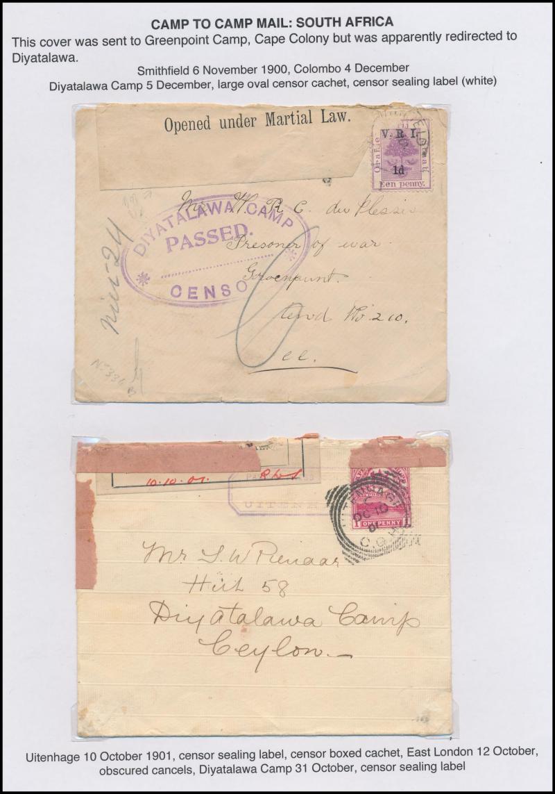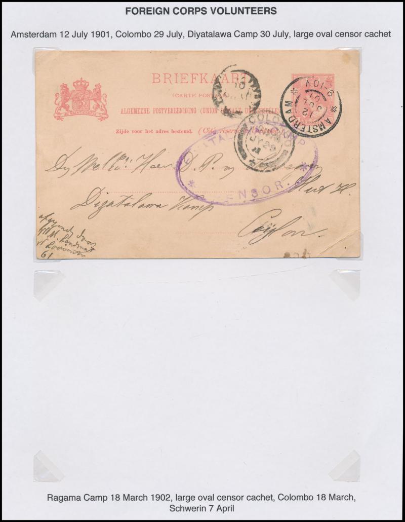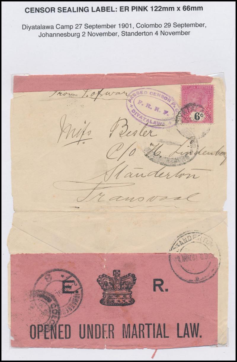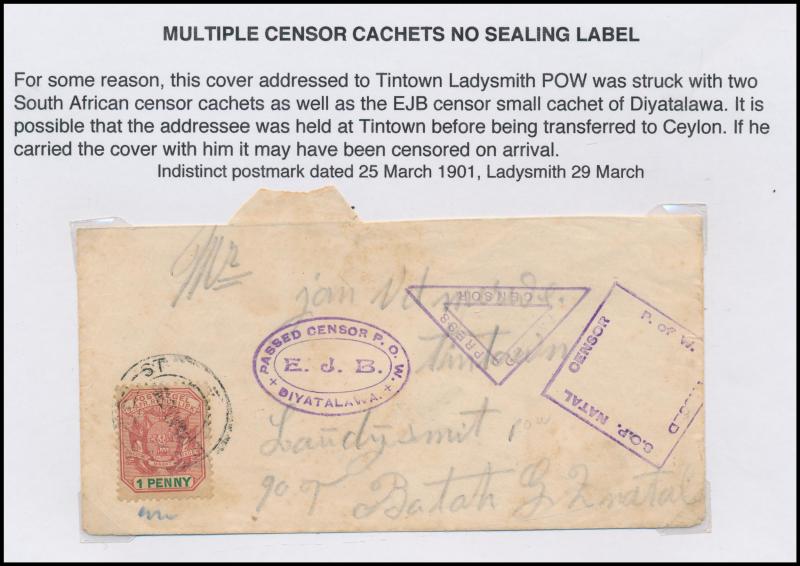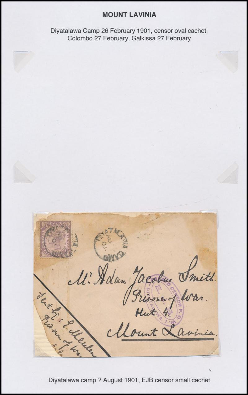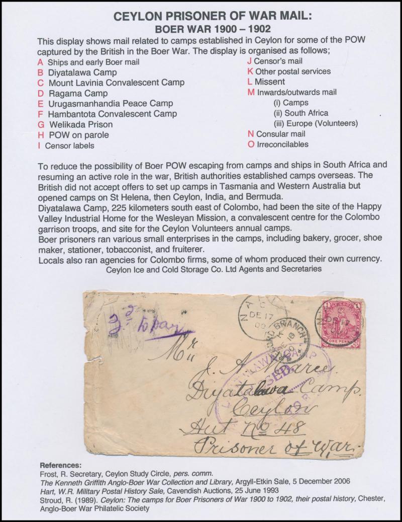 Camp/Diyatalawa", very fine. On 31.5.1902, signing of the Treaty of Vereeniging formally ended the Second Boer War. In Ceylon, censorship ended on 17.7.1902 & most of the POWs were released, the majority returning to South Africa, while others chose
