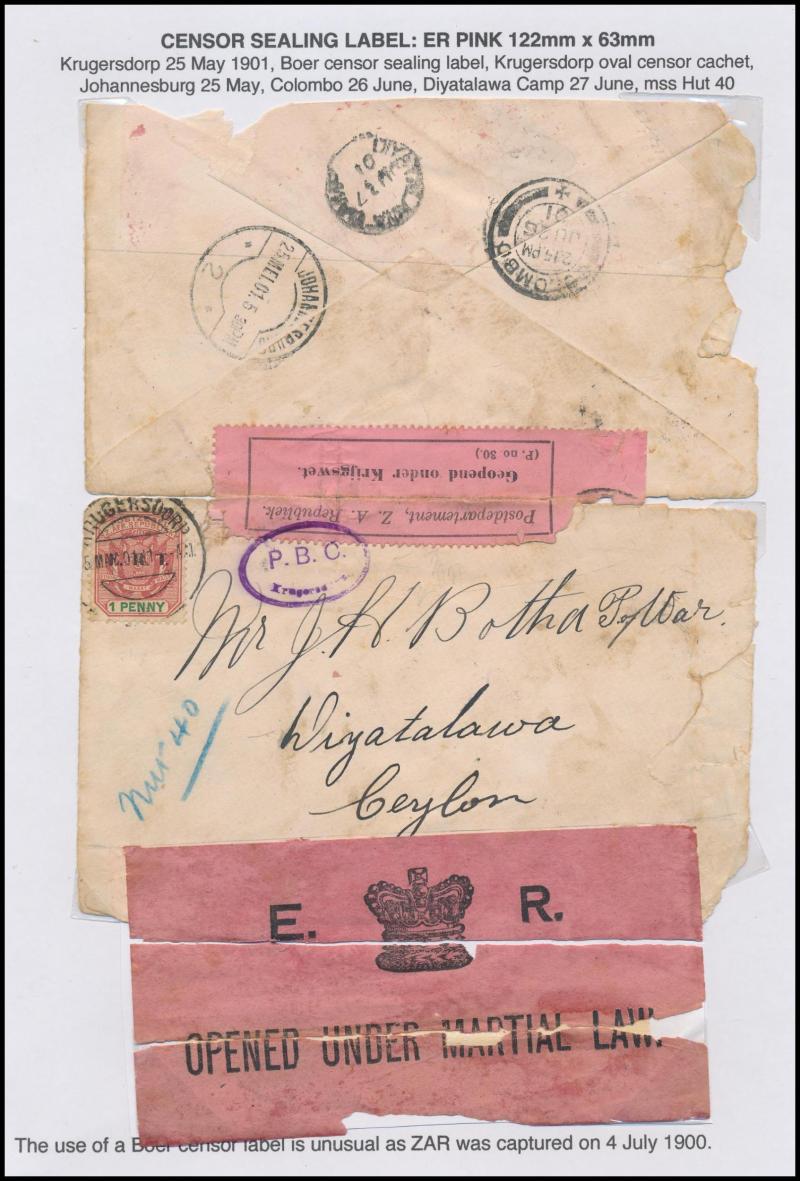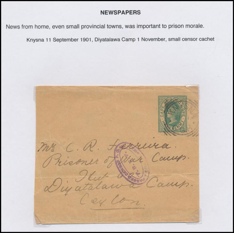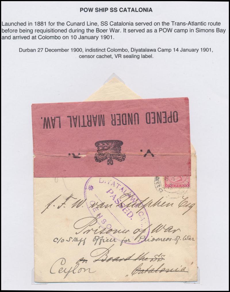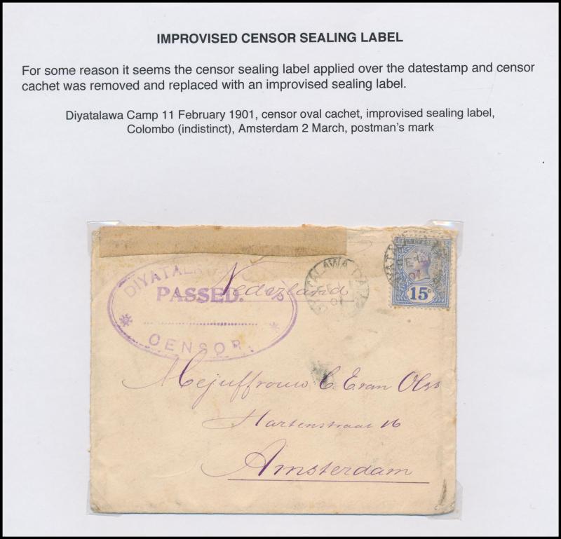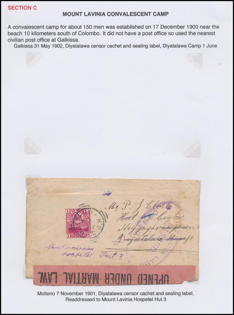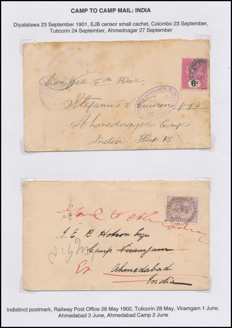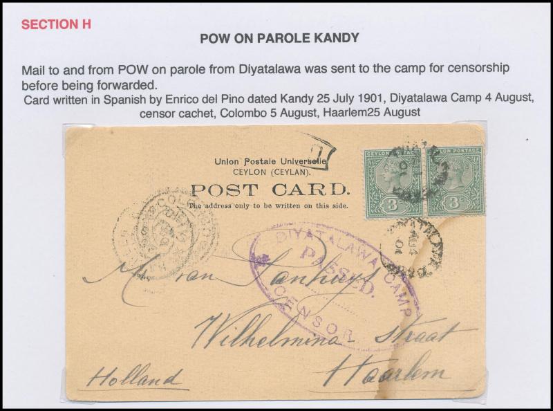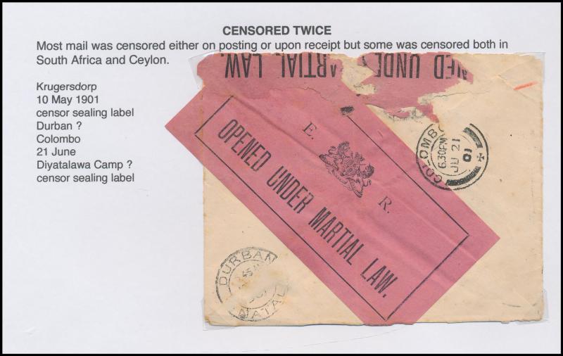 Camp/Diyatalawa", very fine. On 31.5.1902, signing of the Treaty of Vereeniging formally ended the Second Boer War. In Ceylon, censorship ended on 17.7.1902 & most of the POWs were released, the majority returning to South Africa, while others chose