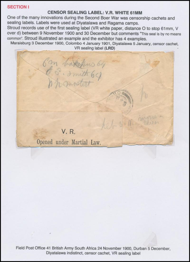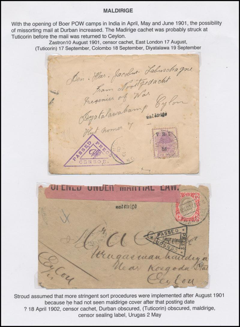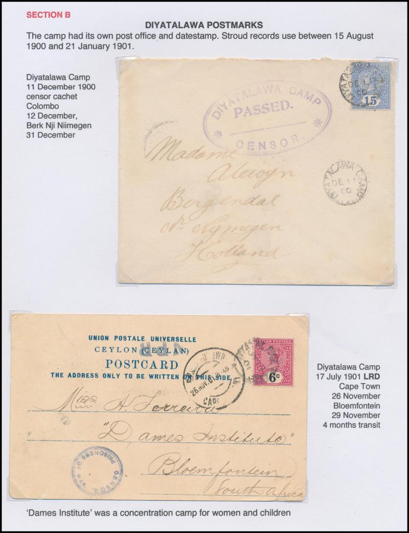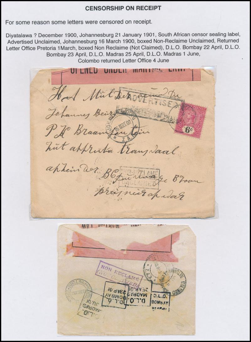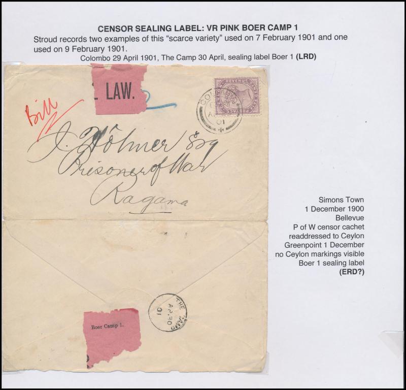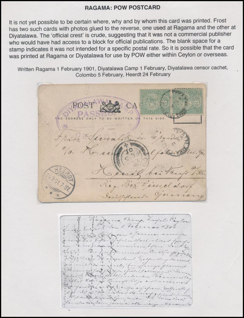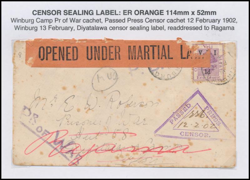 Camp/Diyatalawa", very fine. On 31.5.1902, signing of the Treaty of Vereeniging formally ended the Second Boer War. In Ceylon, censorship ended on 17.7.1902 & most of the POWs were released, the majority returning to South Africa, while others chose
