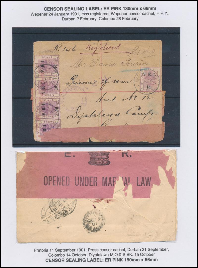 Balance of the collection on Bruce Haynes' exhibit pages with better items including censor cachets & labels from both South Africa