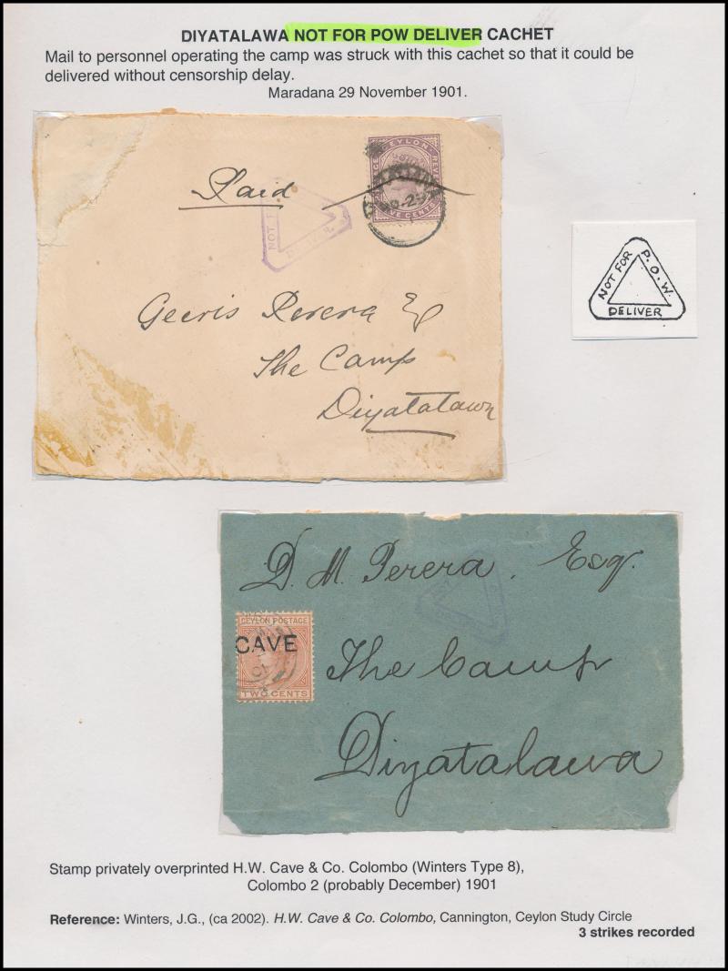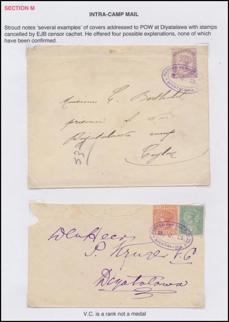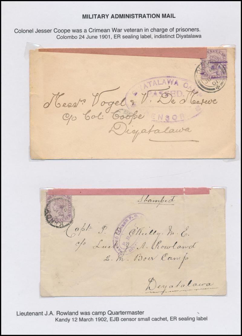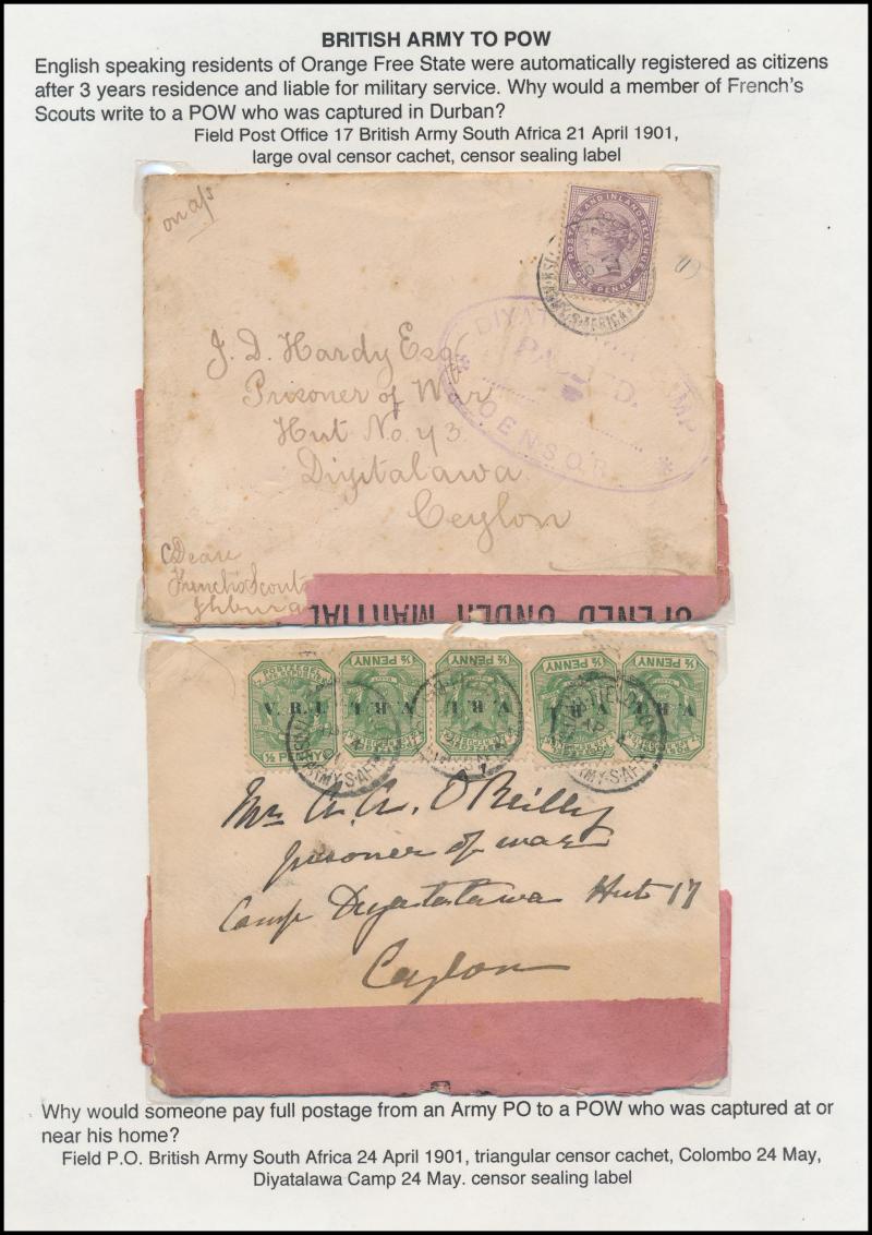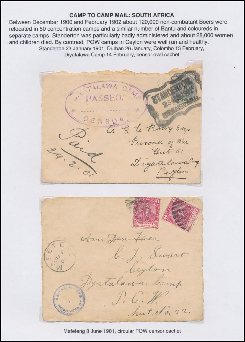 & Ceylon, plenty of postmark content, a few registered items, others missent or taxed, covers to camps at Mount Lavinia, Hambantota & Urugas, inter-camp mails within Ceylon and to/from South Africa & a couple of others including Basutoland, several